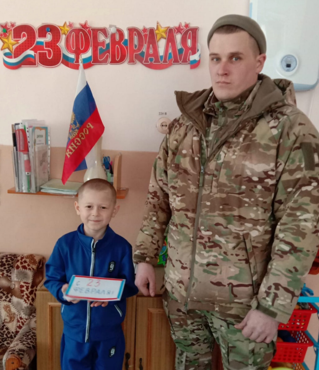 Клочков Максим вручил открытку своему отцу Струк Александру, он служит в зоне СВО, сейчас находится в отпуске.