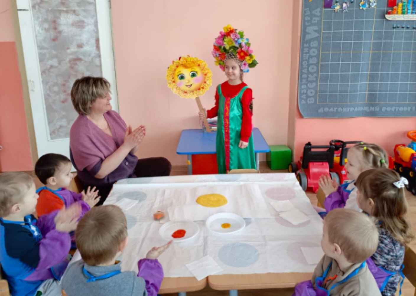 Сегодня в первый день Масленичной недели в гости к малышам первой младшей группы «Затейники» пришла красавица-Весна. А пришла она не одна, а солнышко с собой взяла!