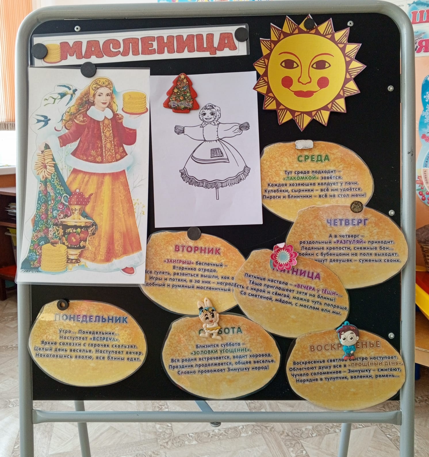 С воспитанниками старшей группы «Светлячки» прошло тематическое занятие «Широкая Масленица». Ребята, познакомились традициями праздника, узнали, что каждый день Масленицы имеет свое название, что его отмечают согласно традициям русского народа по особенному, с весельем.