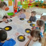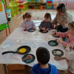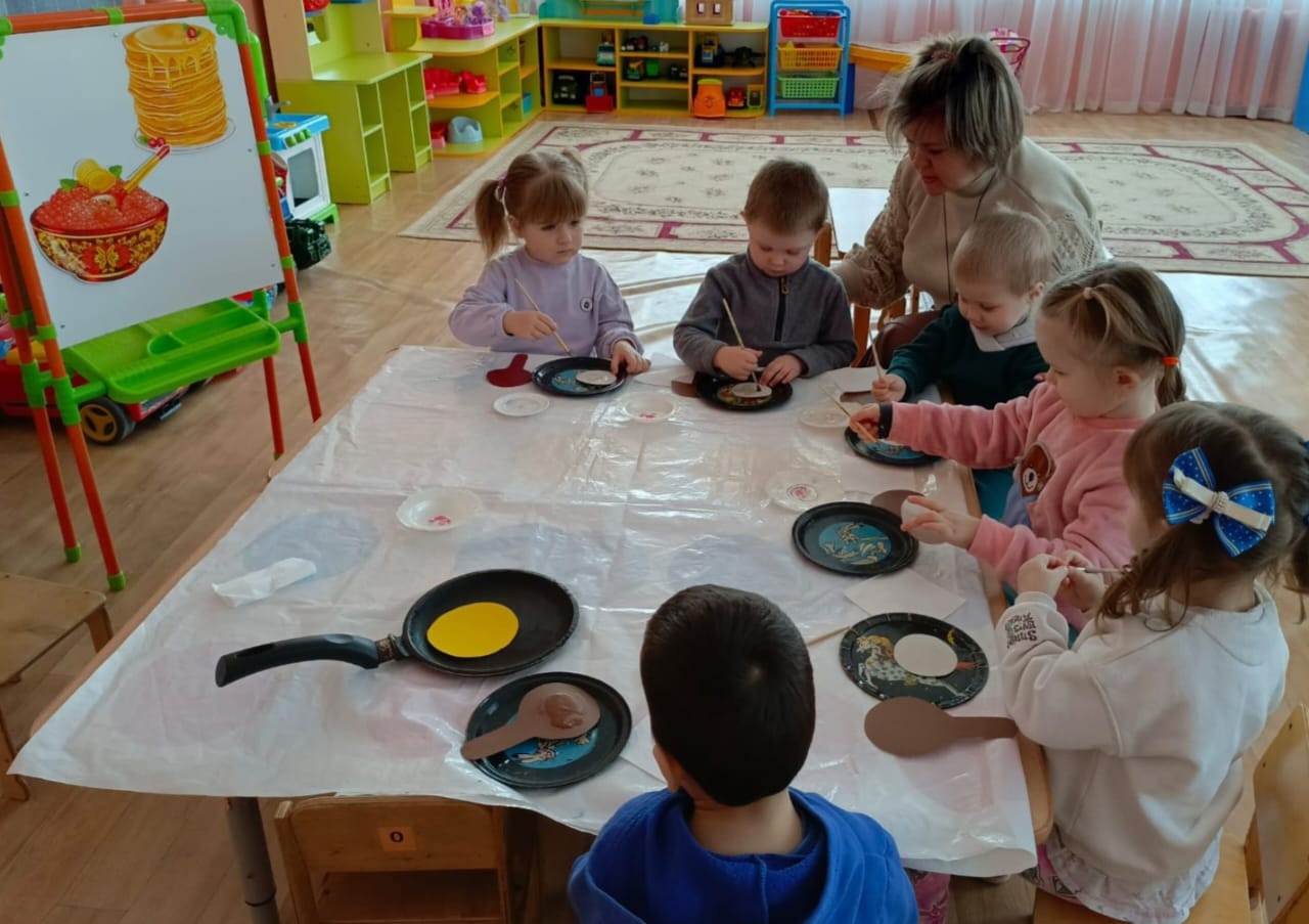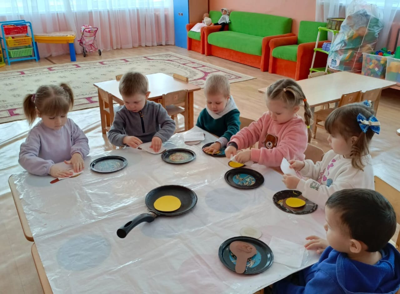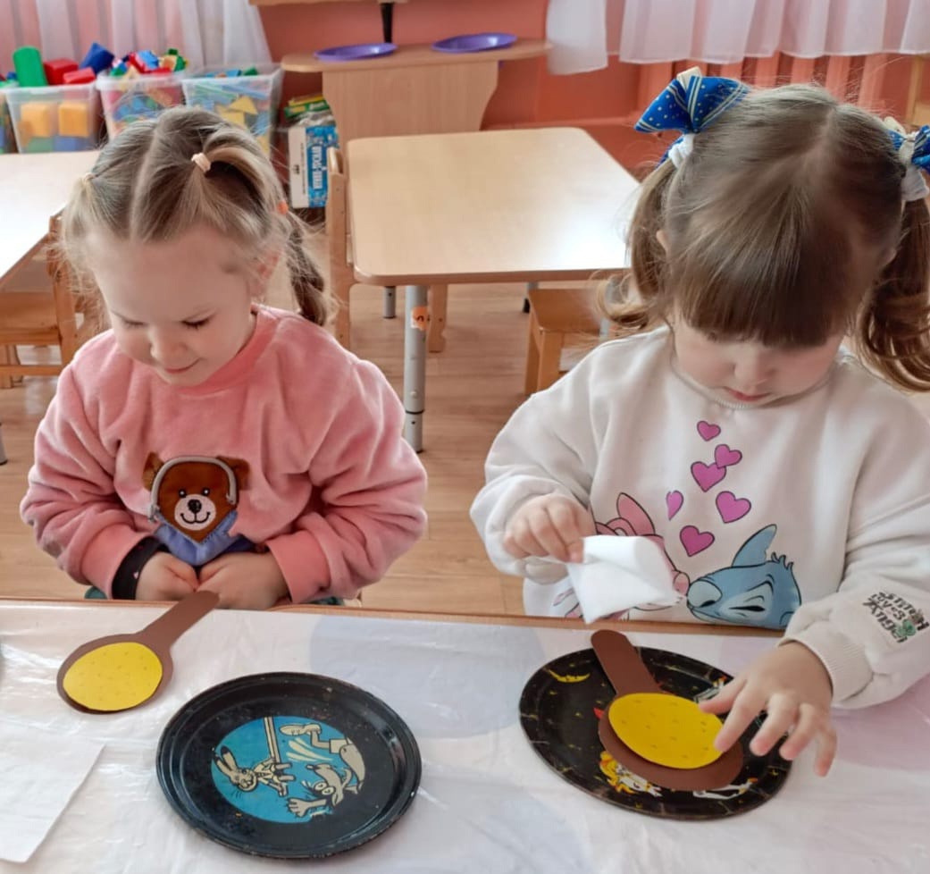 Сегодня на занятии по художественно-эстетическое развитию они решили приготовить блины. Пусть пока эти блинчики сделаны из бумаги, но сделаны они с душой, с большим старанием.