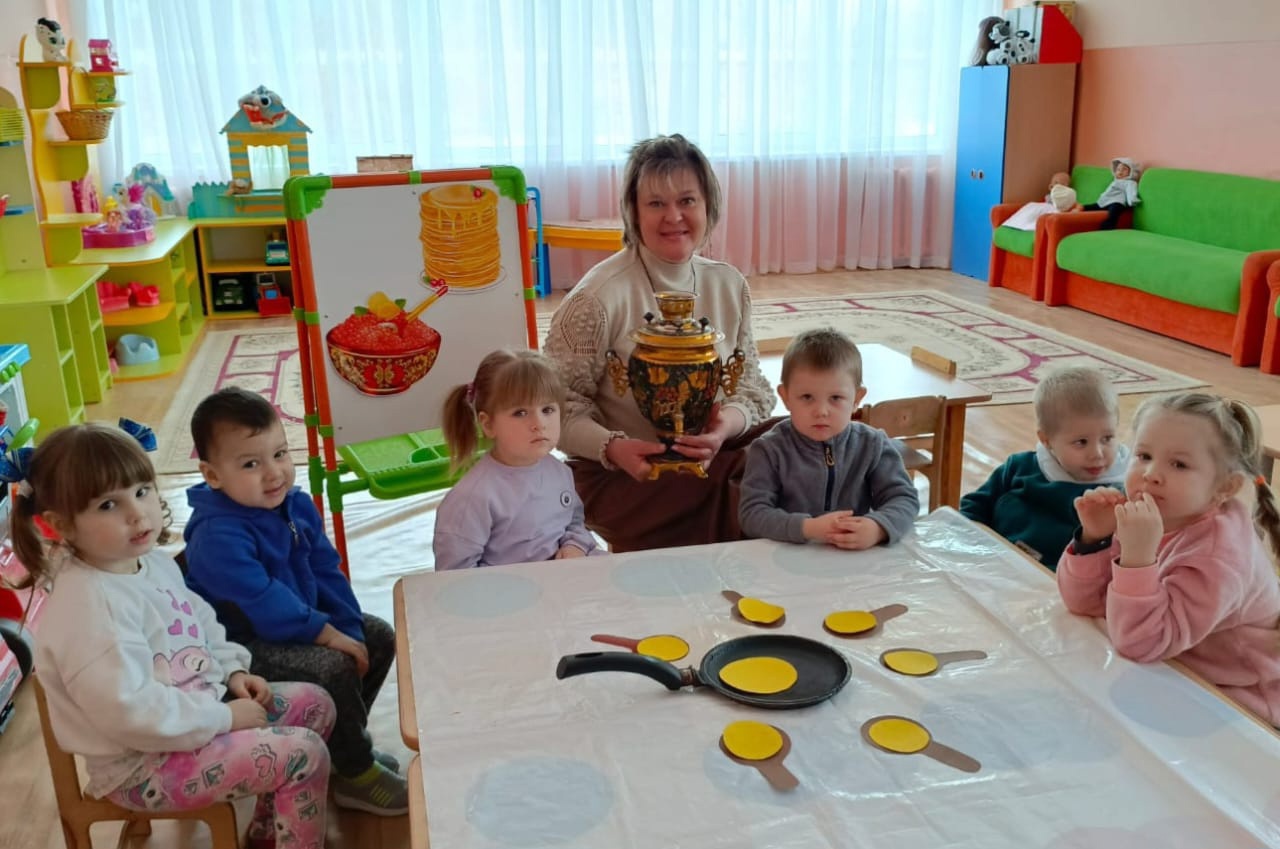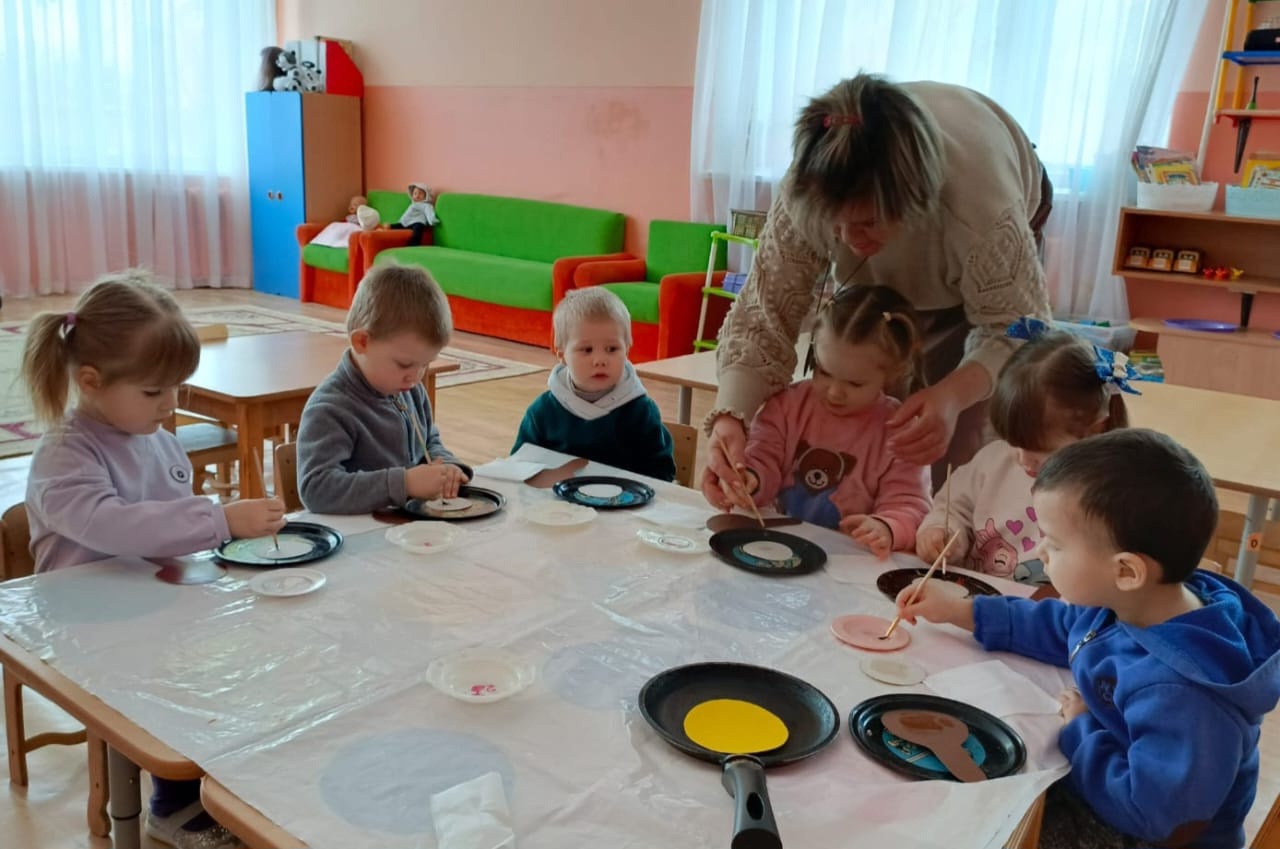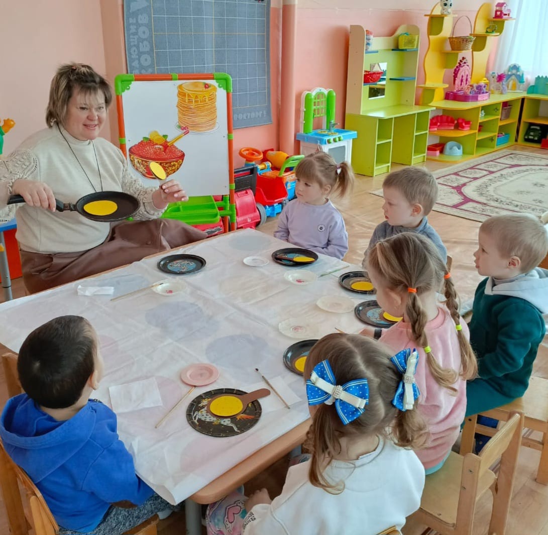 Воспитанники первой младшей группы «Затейники» продолжают знакомится с традициями русского-народного праздника «Масленица».