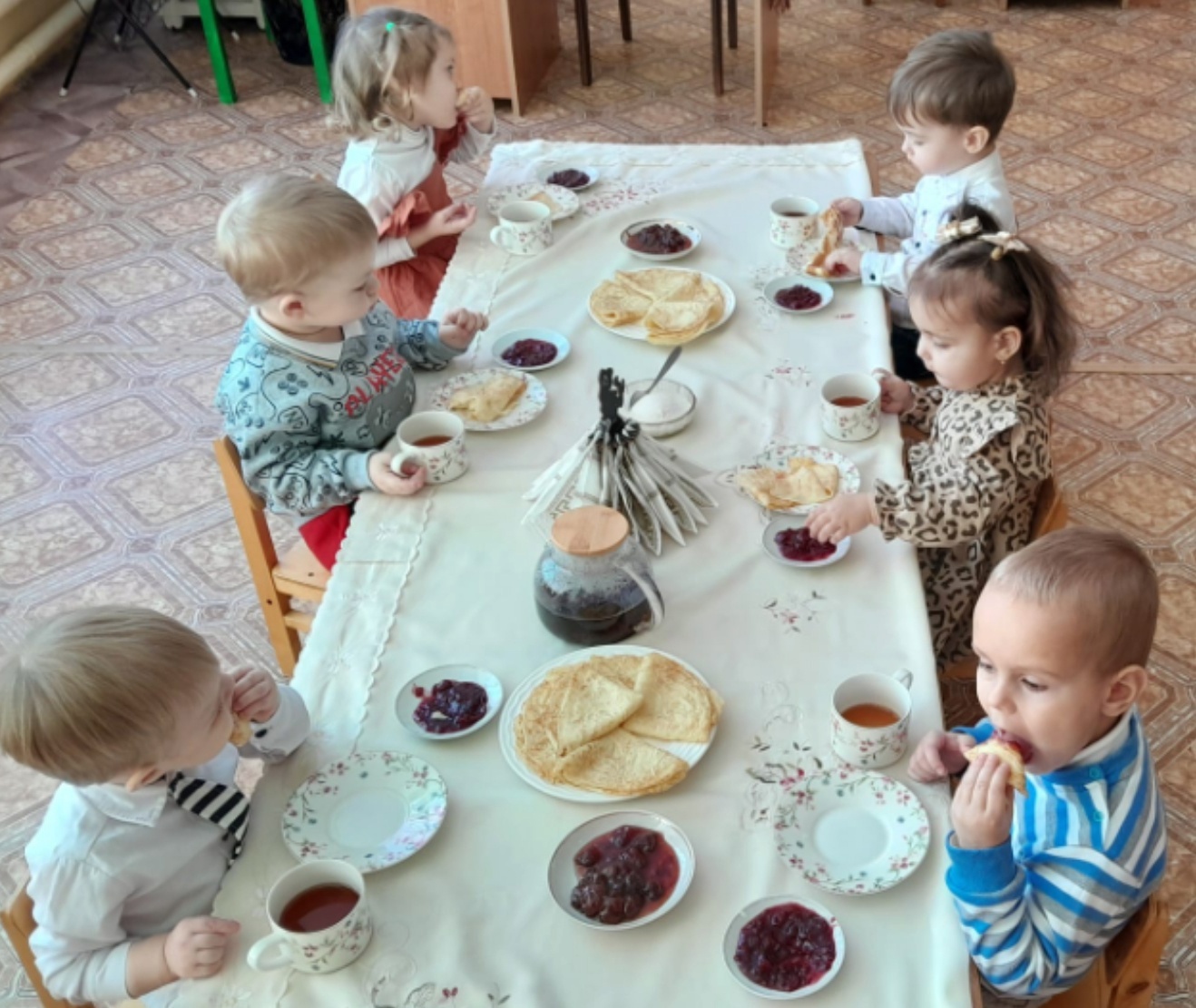 С воспитанниками первой младшей группы «Капелька» прошло тематическое занятие по сенсорному развитию «Мы печём, печём блины».