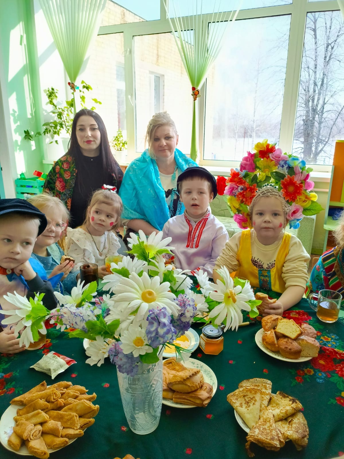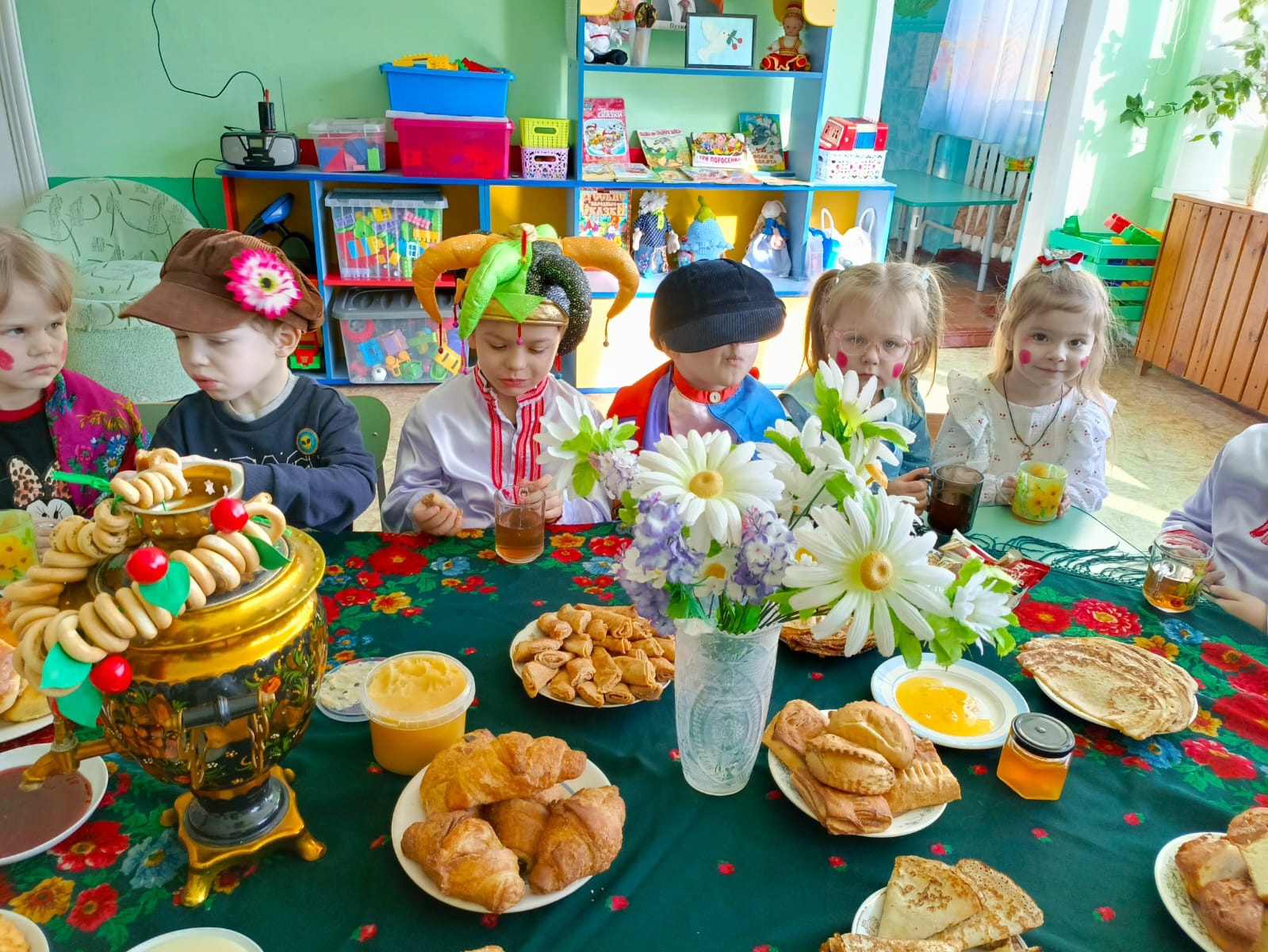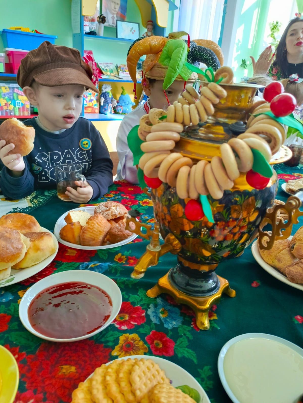 А завершилось веселье чаепитием с вкусными блинами и разнообразными угощеньями..