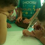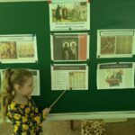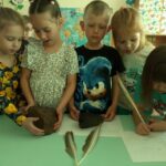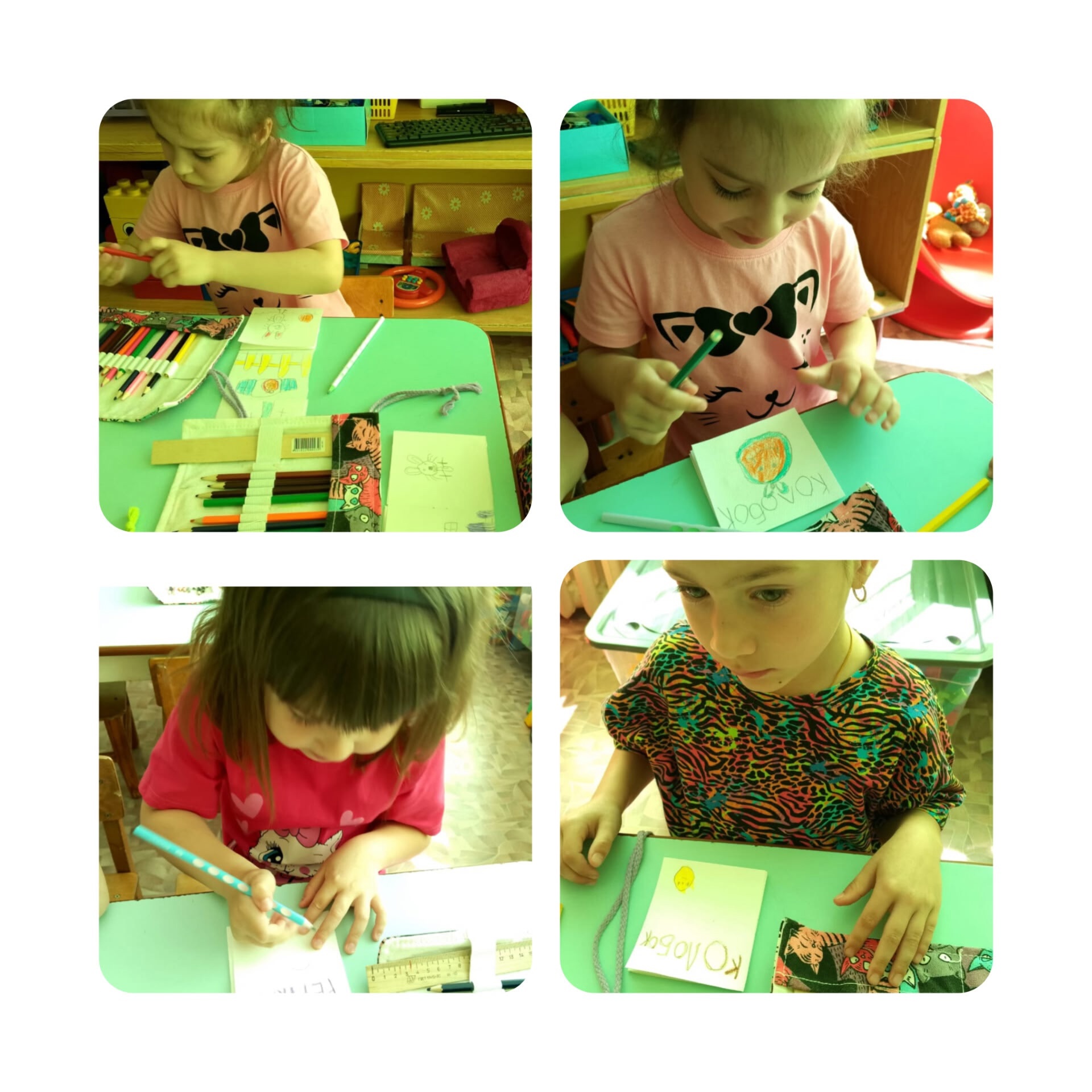 На занятии дети совершили «путешествие в прошлое», узнали на чем и при помощи чего писали (камень, береста, уголь, густнное перо).