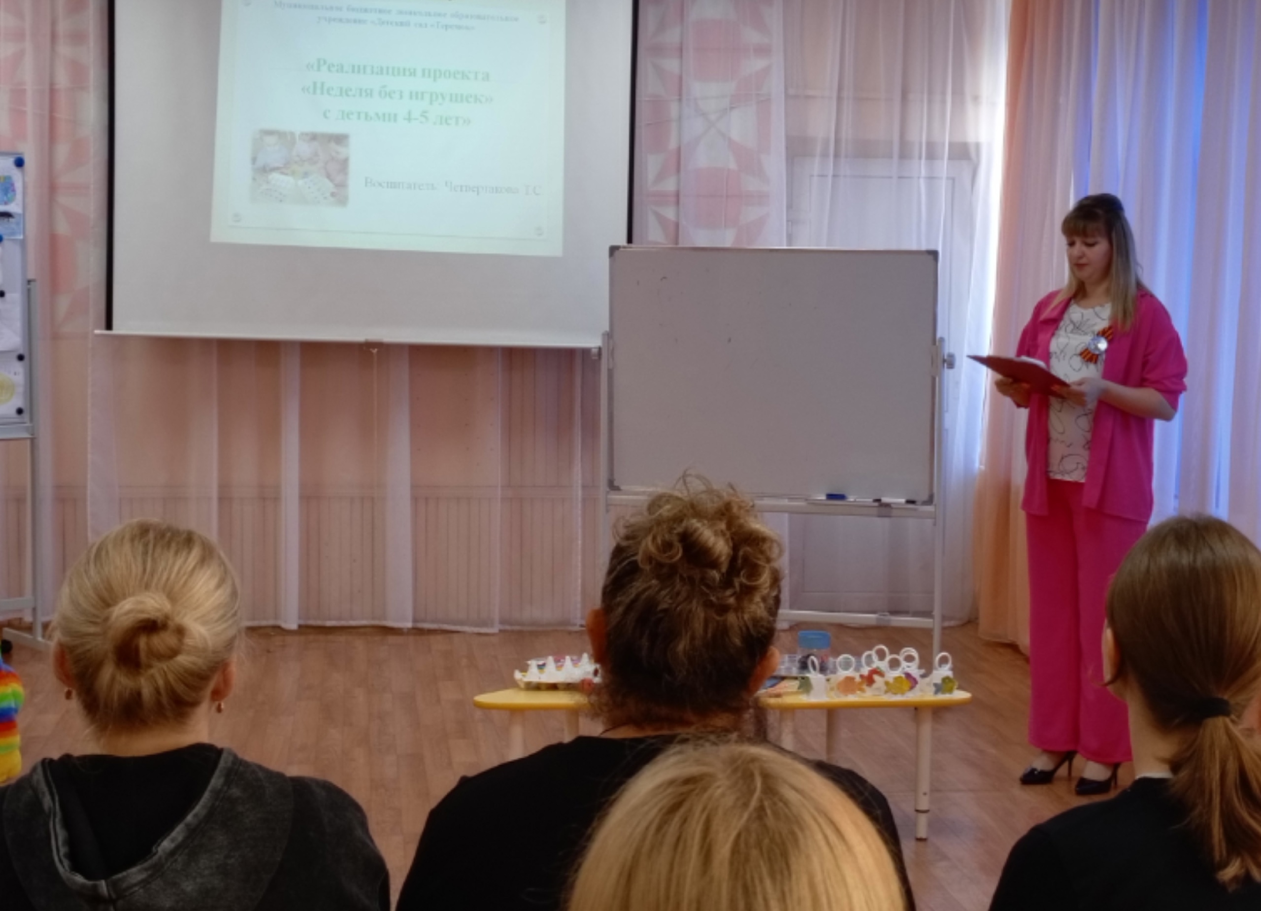 Воспитатель Четвертакова Татьяна Сергеевна поделилась с родителями опытом реализации проекта «Неделя без игрушек». Рассказала, как можно без затрат из бросового материала, имеющегося дома сделать вместе с ребенком своими руками полезную развивающую игру.