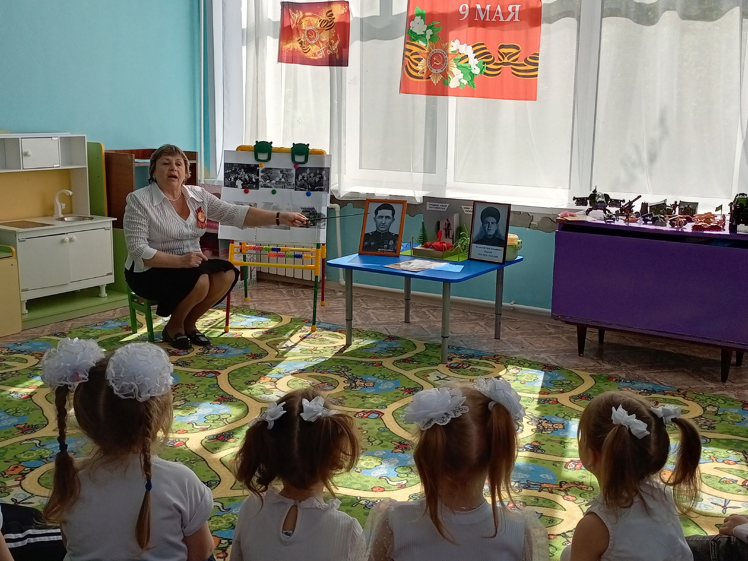 Дети узнали о том, что 9 мая в нашей стране отмечается важный праздник — День Победы, поговорили о том, как в годы войны люди защищали свою Родину от врагов, читали стихи, посвященные празднику Победы, познакомились с песней «День Победы»
