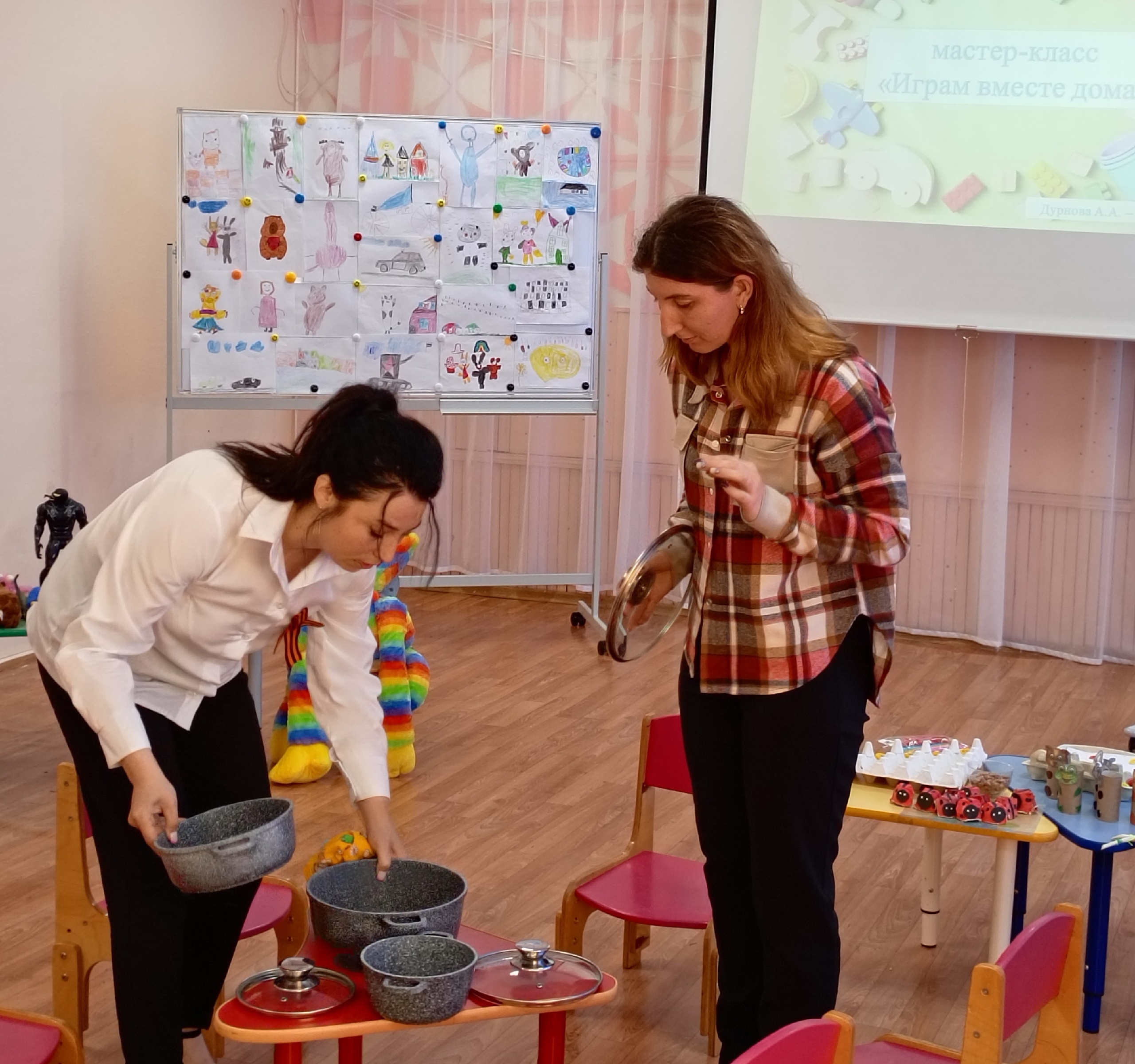 Дурнова Анастасия Александровна провела с родителями мастер-класс «Играем вместе». Она познакомила родителей с интересными и в тоже время простыми играми, в которые можно играть дома без какой-либо подготовки и каких-либо материальных затрат, совмещая домашние дела по дому, на кухне.