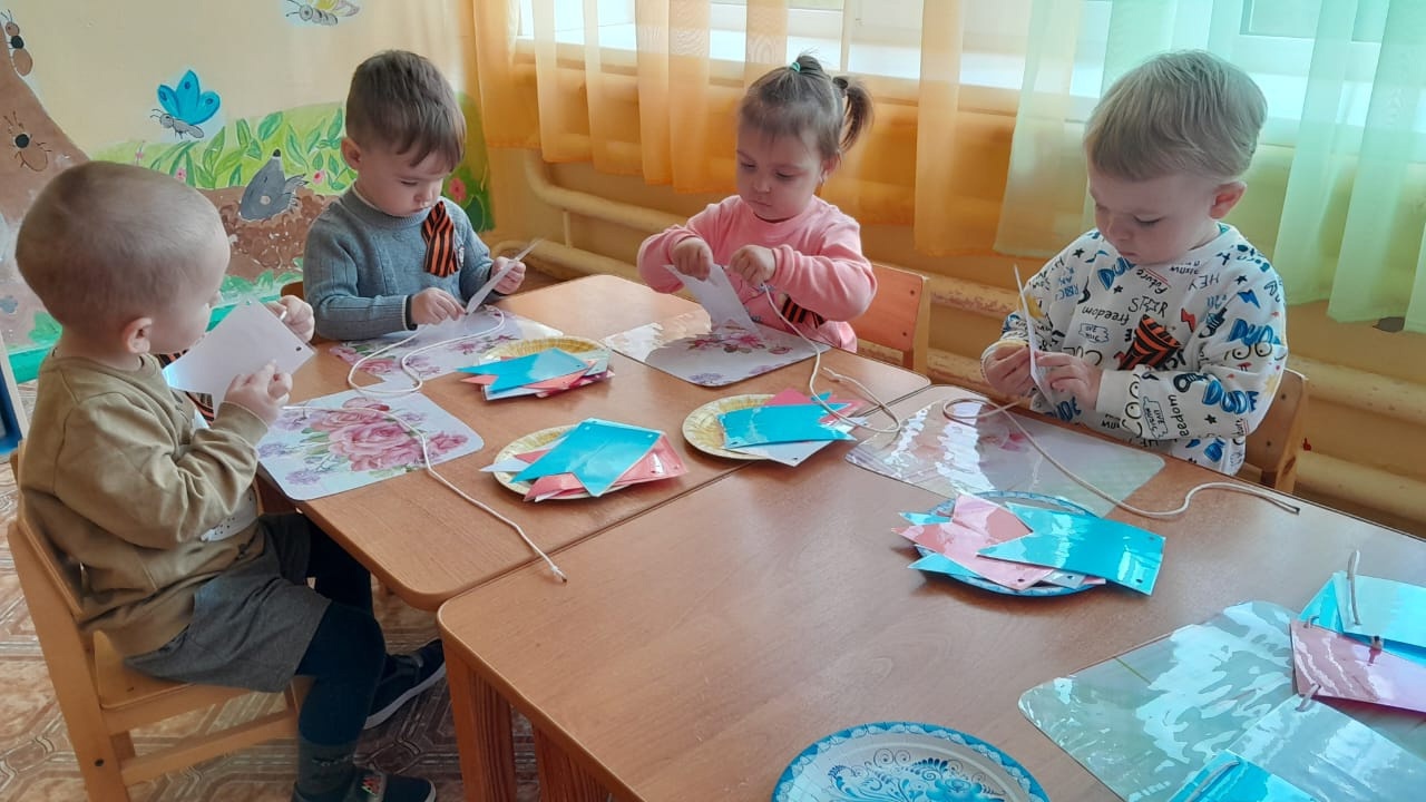 В рамках тематической недели «День Победы» с воспитанниками первой младшей группы «Капелька» прошло занятие по сенсорному развитию «Голубь Мира».