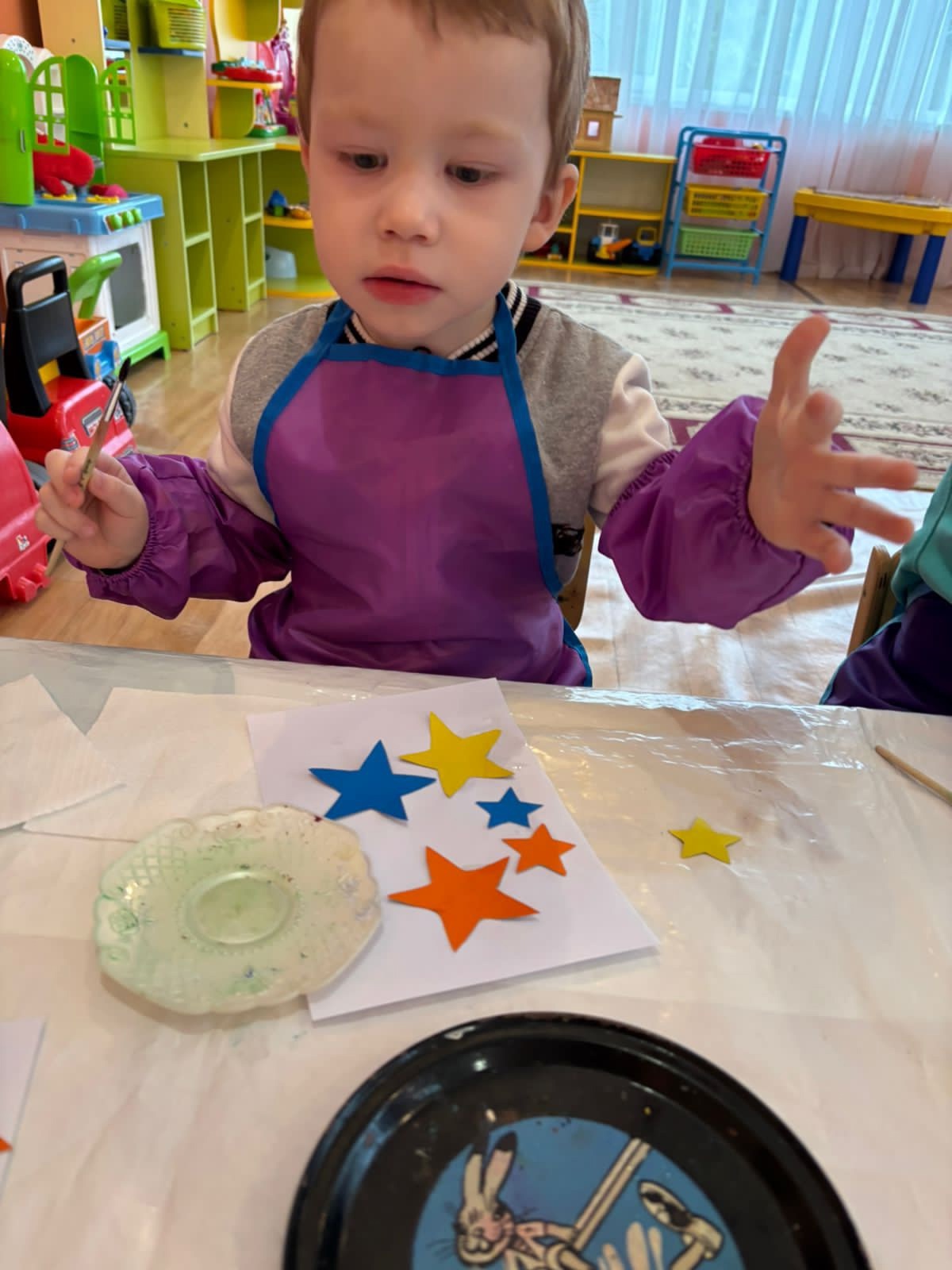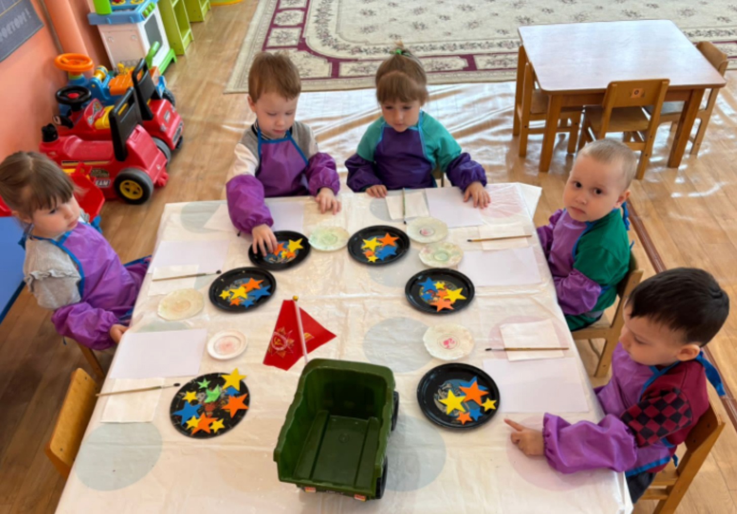 В рамках тематической недели «День Победы» в первой младшей группе “Затейники” прошло занятие по художественно-эстетическому развитию “Салют Победы”. Ребята узнали, что 9 мая в нашей стране мы отмечаем большой праздник — День Победы. В честь всех кто защищал нашу Родину от врагов в этот день во всех городах страны проходят праздничные парады, люди несут цветы к «вечному огню», зажигаю свечи памяти, запускают салют.