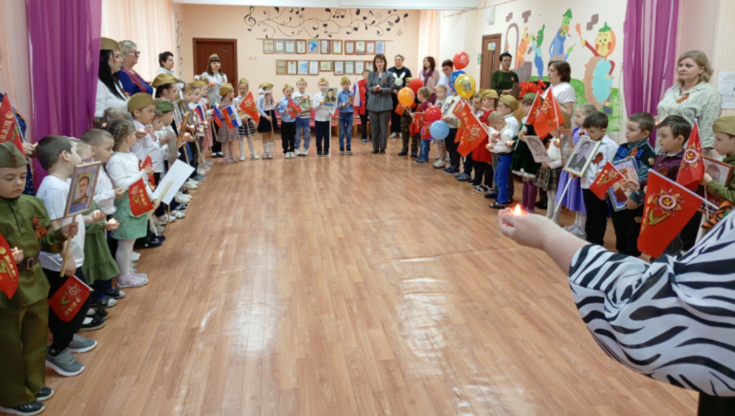 На митинге собрались воспитатели, воспитанники средних, старших и подготовительных групп, чтобы вместе вспомнить трагические события Великой Отечественной войны и почтить память тех, кто отдал свою жизнь за мирное небо над головой.