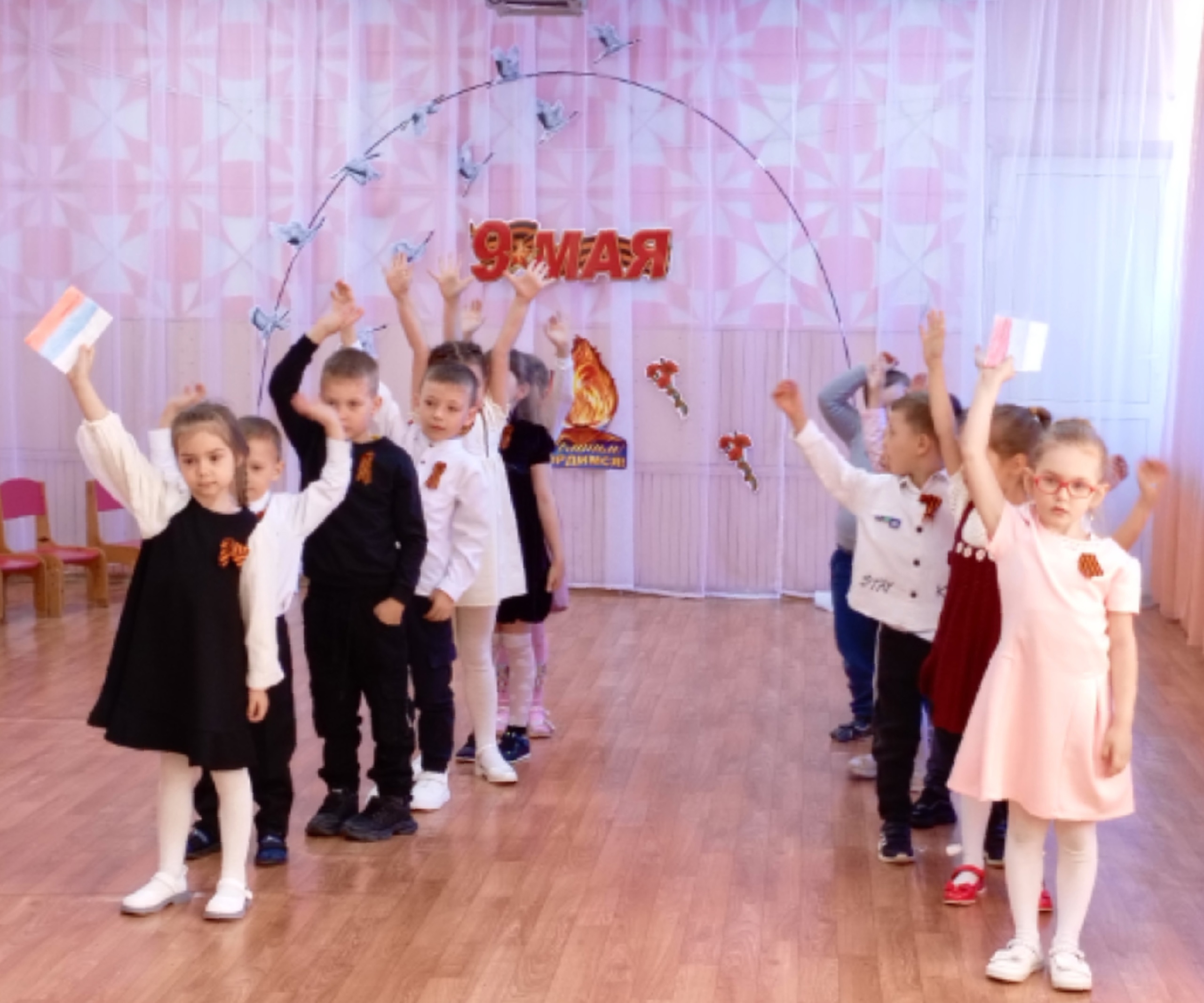 В старших группах «Одуванчики» и «Светлячки» прошли музыкальные развлечения «Мы помним! Мы гордимся!», посвященные 9 мая, 80 -летию Победы.