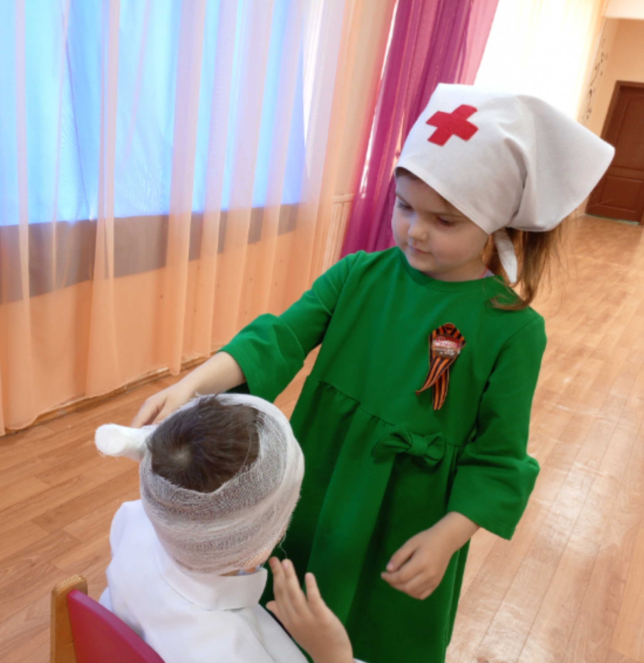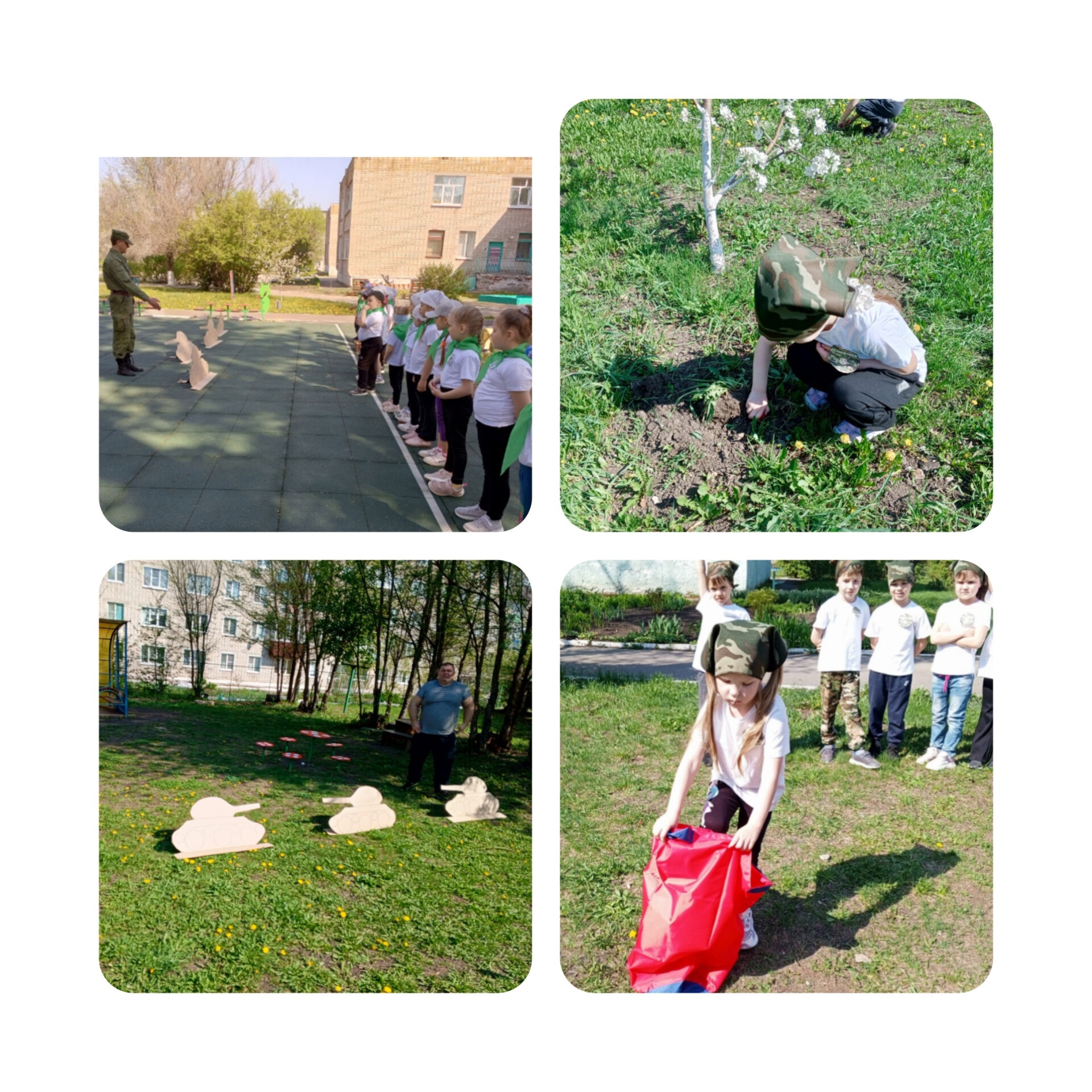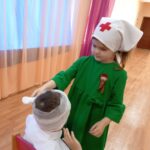 Ребята читали стихи, пели военные песни, танцевали, весело играли, соревнуясь в ловкости, примерив на себя роли военных профессии (медсестры, радиста, летчика, разведчика).