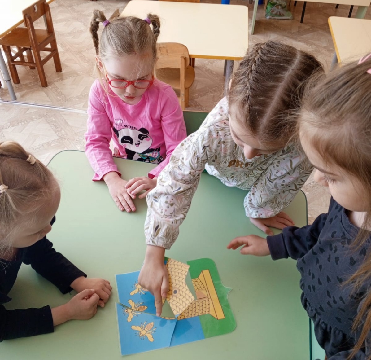 Романтовский Илья, Никулина Ульяна, Ахметшина Амина, Линник Ева — воспитанники средней группы «Светлячки»