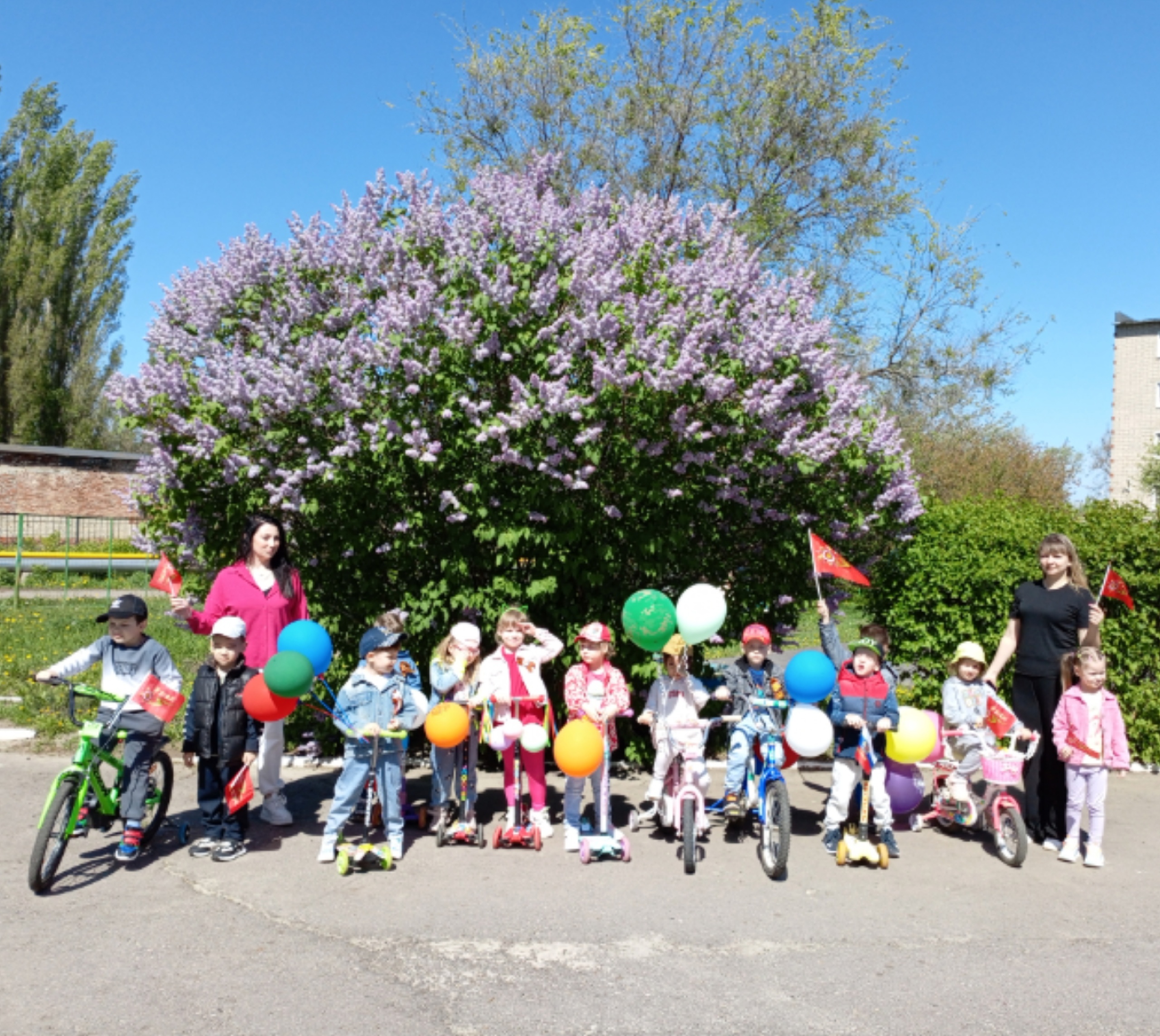 В преддверии приближающего праздника 9 мая в нашем детском саду прошел велосамокатозаезд «Помним! Гордимся!», посвященный 80-летию Великой Победы».