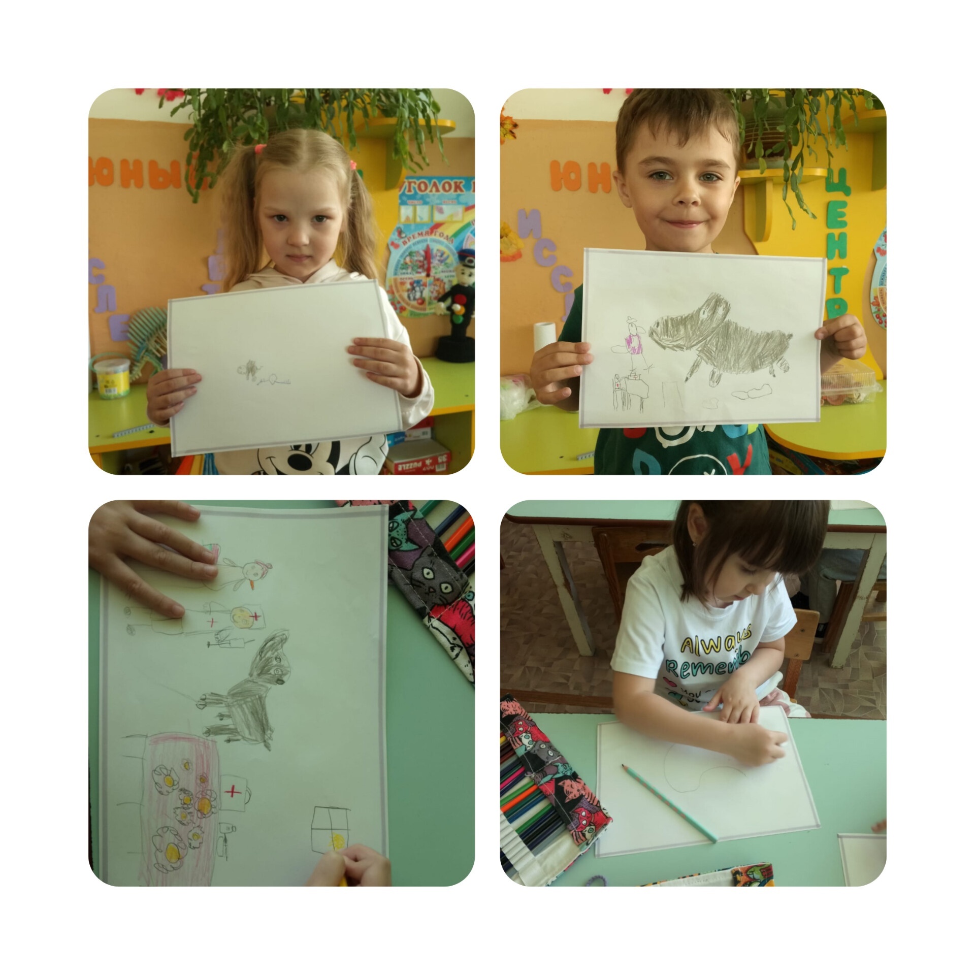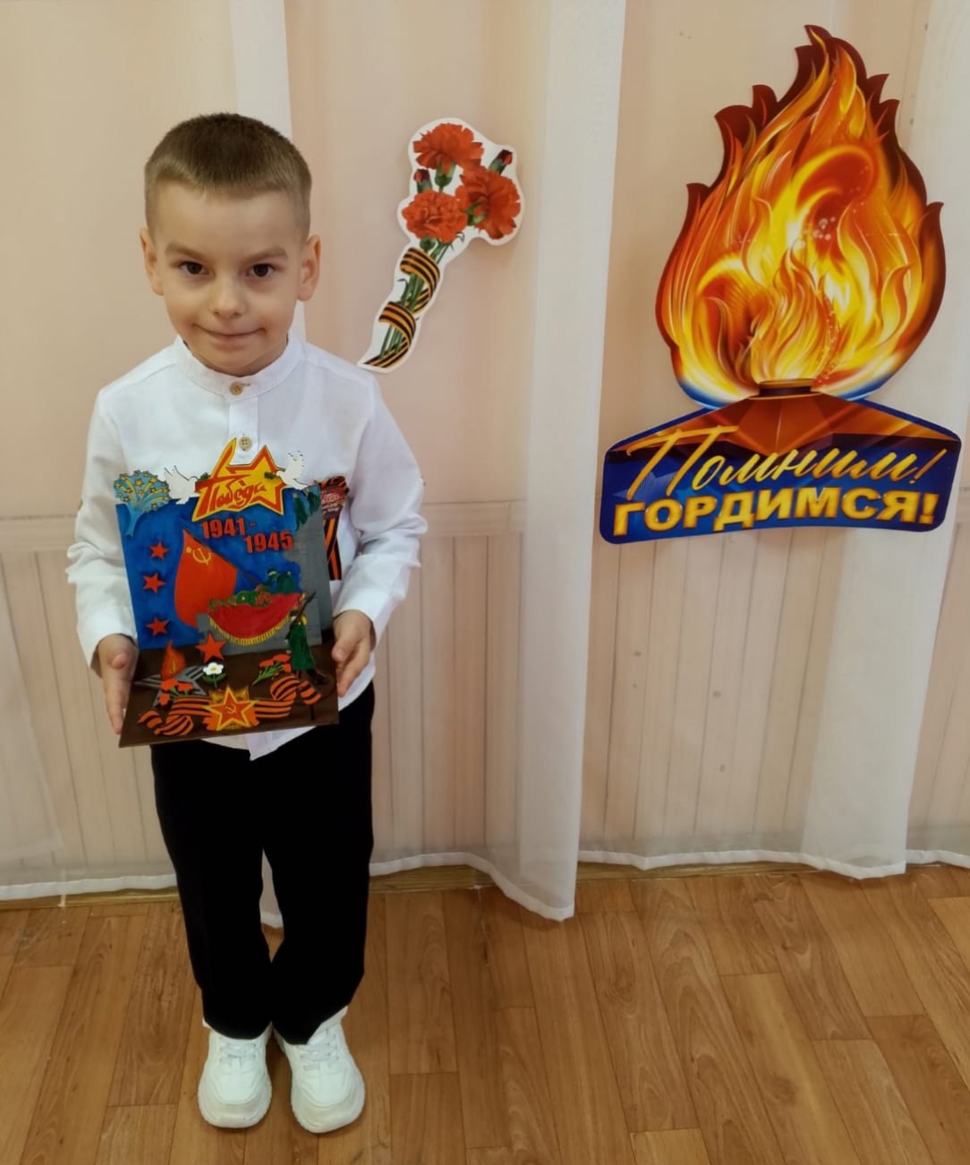 Кудрявцев Миша, Крутских Максим, Масликов Виктор, Сушков Илья — воспитанники подготовительной к школе группы «Ягодка» — участники Всероссийского семейного конкурса «Рисуем с детьми Вечный огонь», который проводится в рамках фестиваля юных талантов «Волшебная сила голубого потока — МОСГАЗ зажигает звезды» и акции Народного фронта «Вечный огонь в нашем сердце».