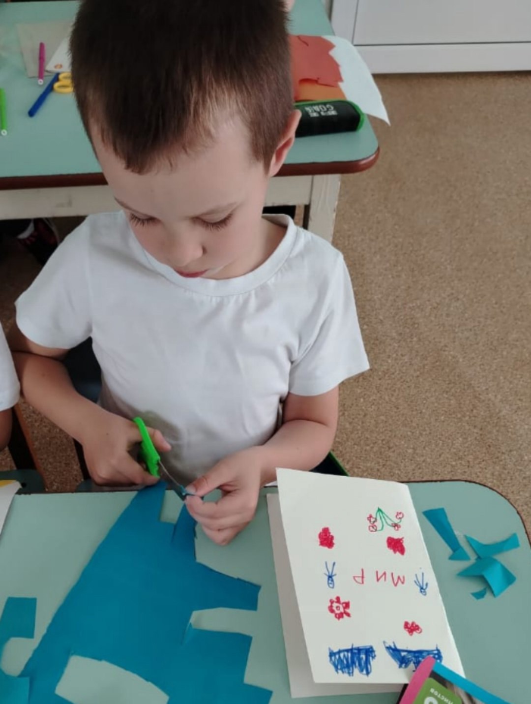 На занятии по художественно-эстетическому развитию дети сделали поздравительные открытки.