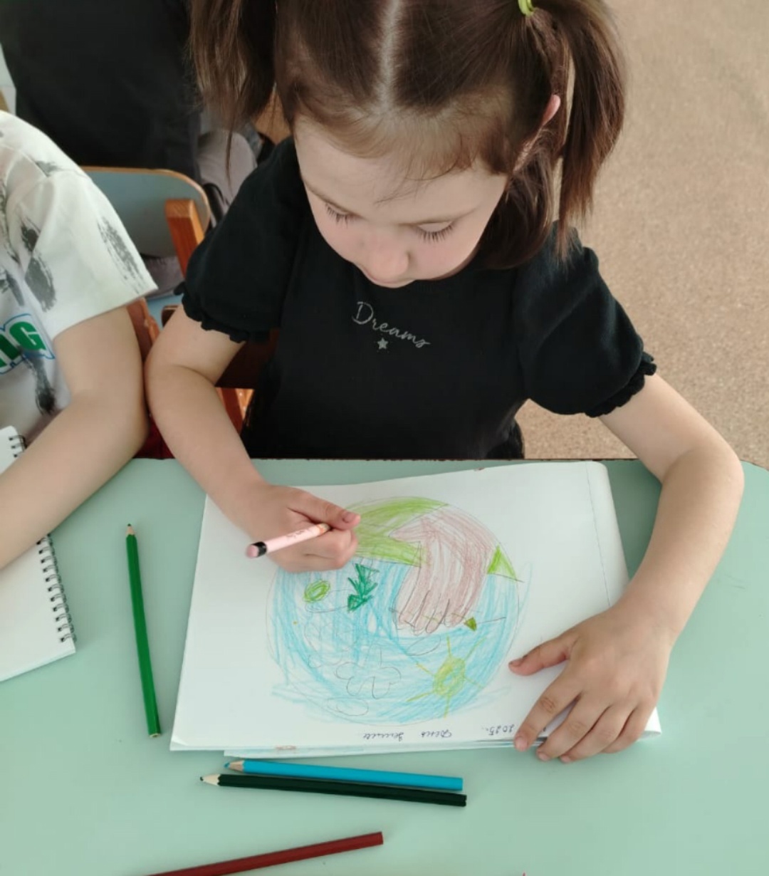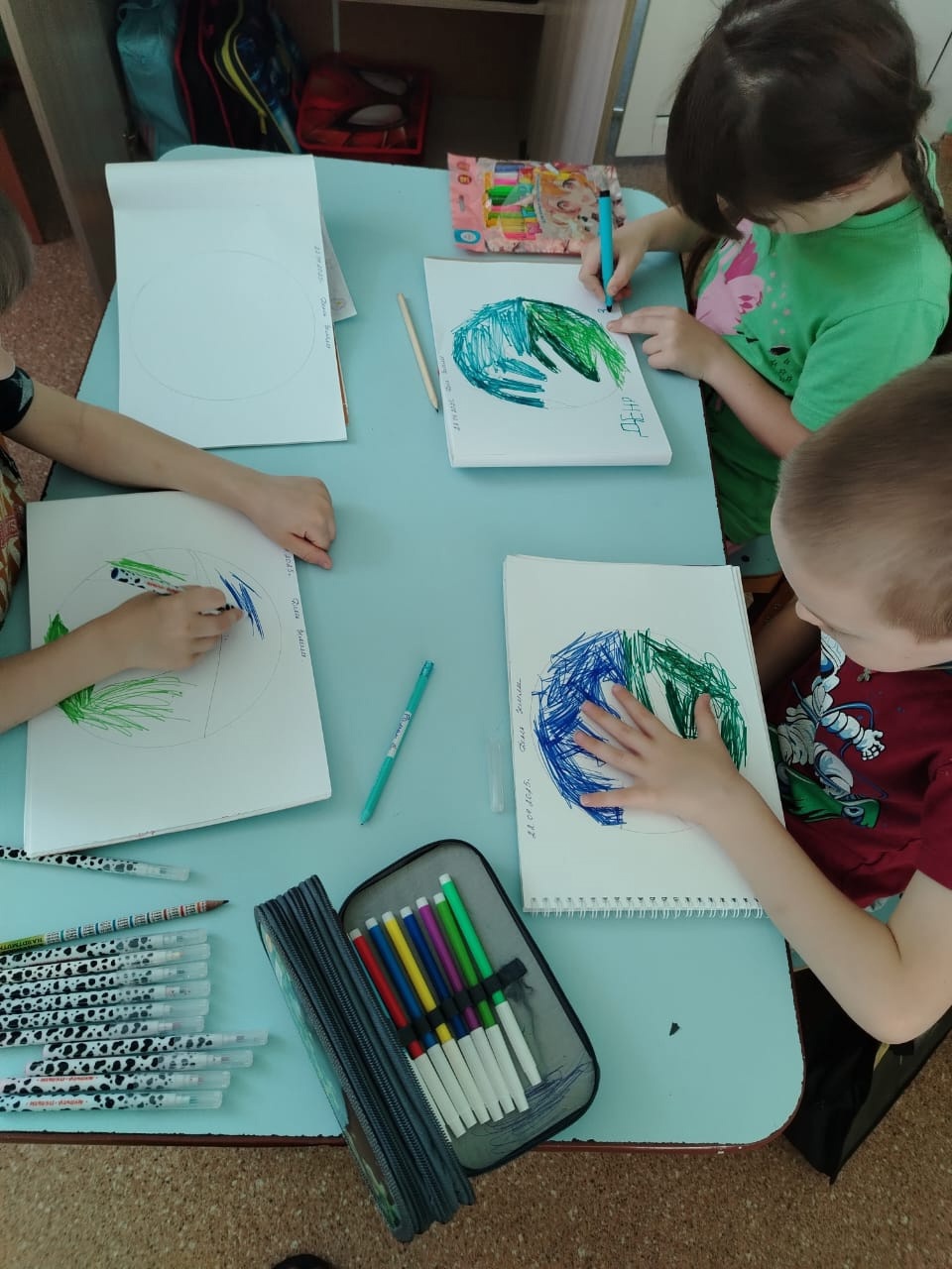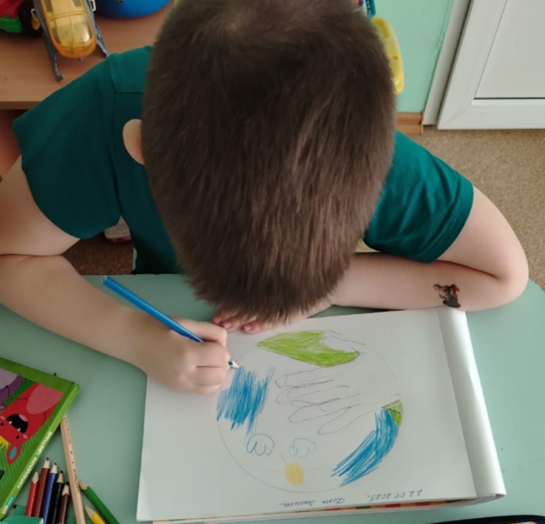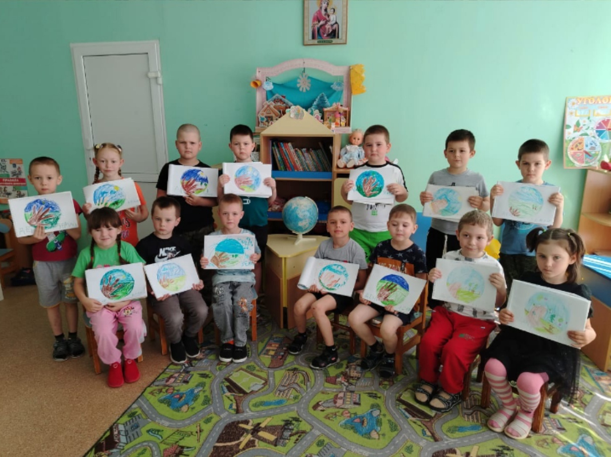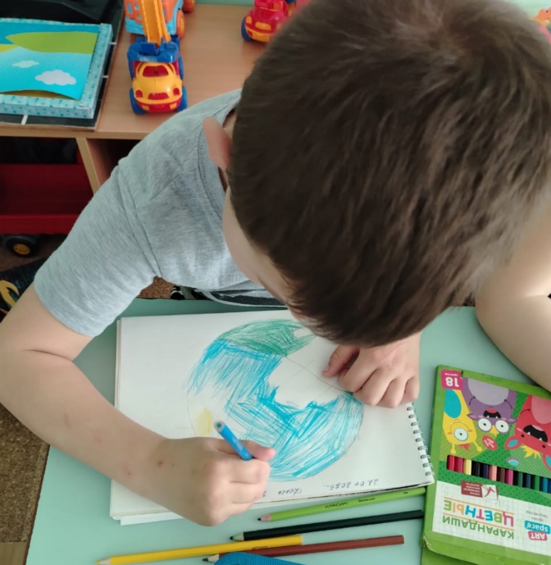 Воспитанники подготовительной к школе группы «Ягодка» нарисовали подарок для нашей матушки Земли — рисунки «Планета Земля».