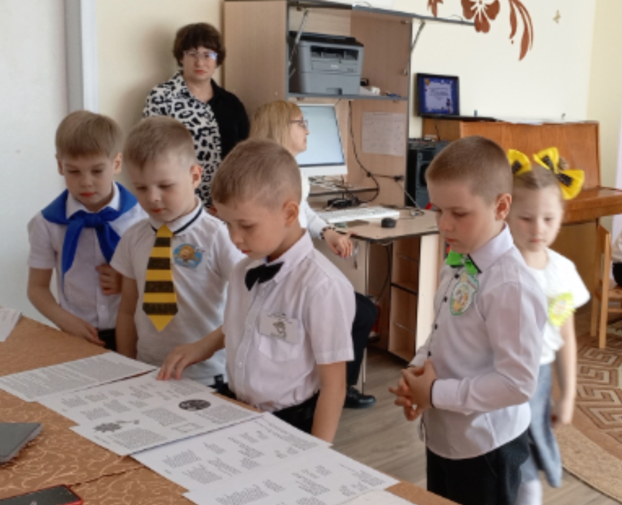 Во второй части встречи прошло торжественное посвящение «пчёлок» в эколята. Ребята вместе с Умницей произнесли клятву Эколят – Молодых защитников Природы, каждый получил свидетельство эколят.