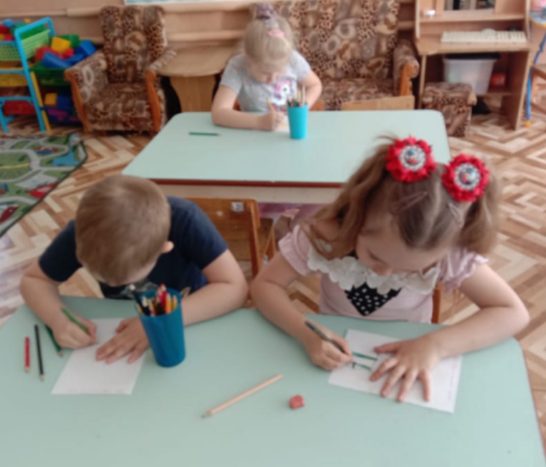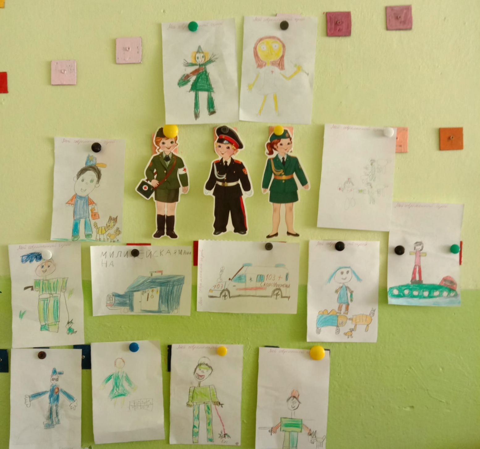 Во второй части занятия ребята немного пофантазировали, нарисовали себя в будущем в роли героя..