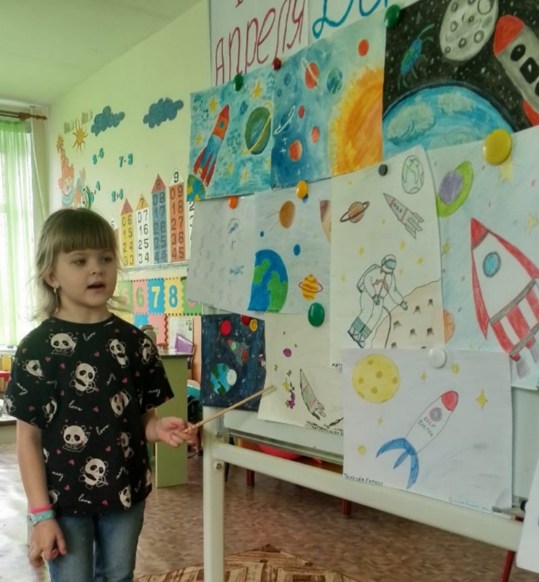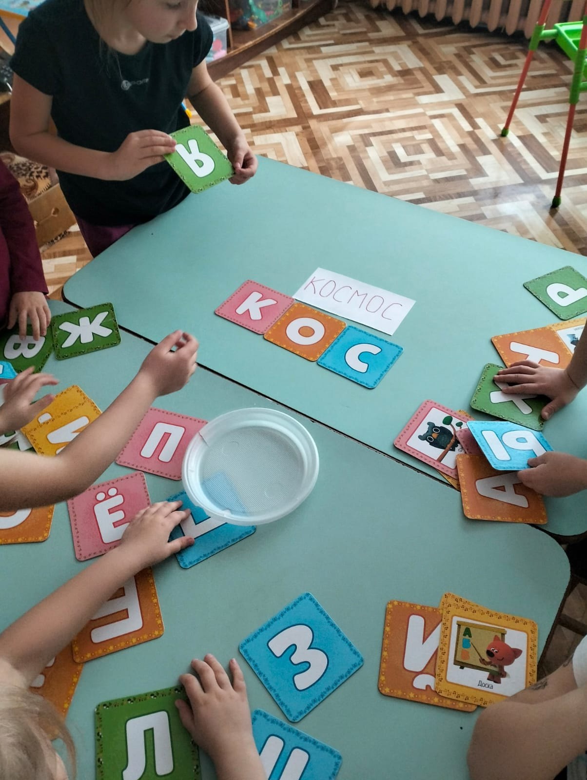 Ребята расширили свои представления и знания о космосе, о российских ученых, стоявших у истоков развития российской космонавтики, обследовали о строении Солнечной системы, космических явлениях, звездах, спутниках, играли в дидактические игры «Собери слово», «Нарисуй космический объект».