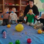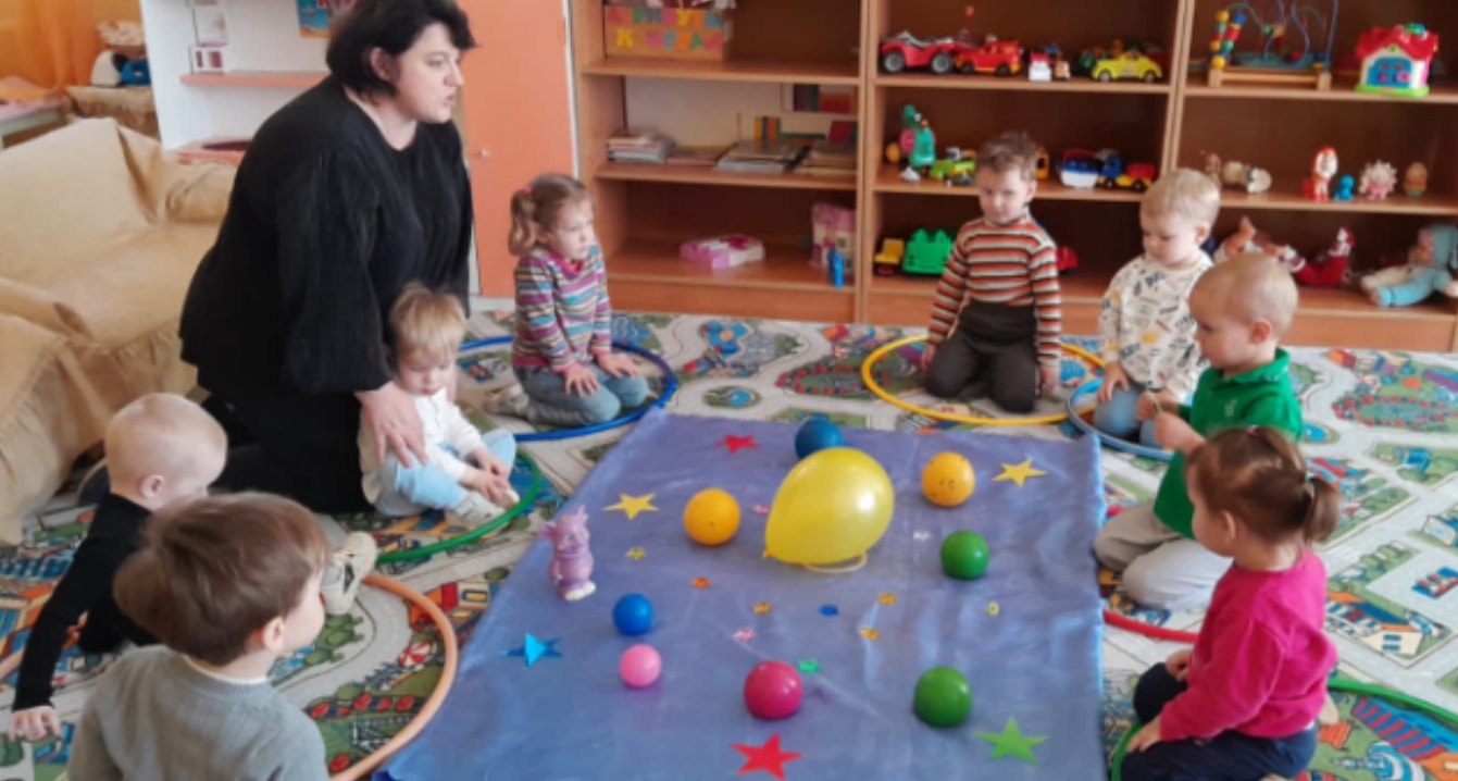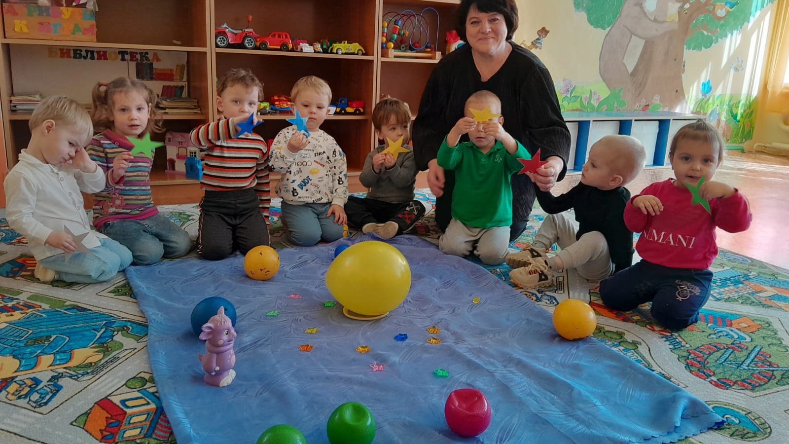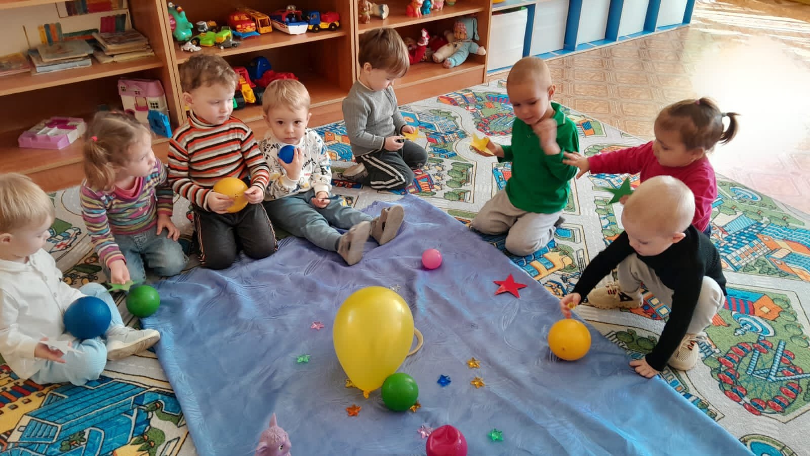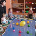 С воспитанниками первой младшей группы «Капелька» прошло тематическое занятие по сенсорному развитию «Путешествие в космос к солнечной системе». Малыши на ракетах вместе с другом Лунтиком отправились в космос, но вот беда, Лунтик перепутал все звёзды и забыл их цвета. Ребята помогли Лунтику, нашли звездочки и назвали их цвета. Во второй части занятия дети превратились в «планеты» солнечной системы и полетели каждая по своей орбите вокруг Солнца, вернувшись на Землю Лунтик каждому малышу на память подарил волшебные звездочки.