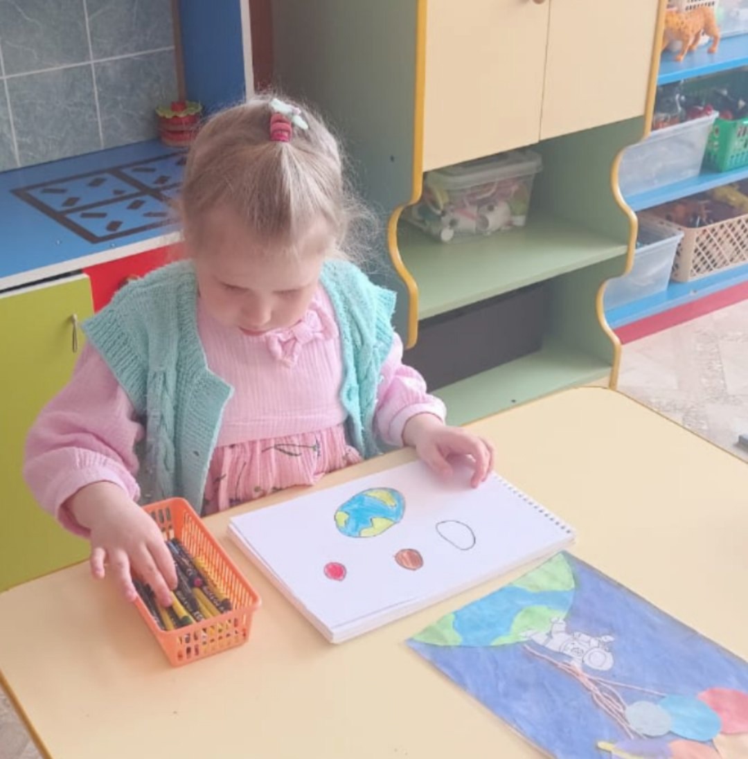 С воспитанниками старшей группы «Светлячки» в рамках тематической недели прошло занятие по художественно-эстетическому развитию «Мой космос».