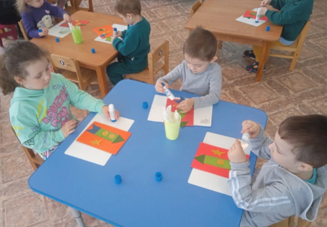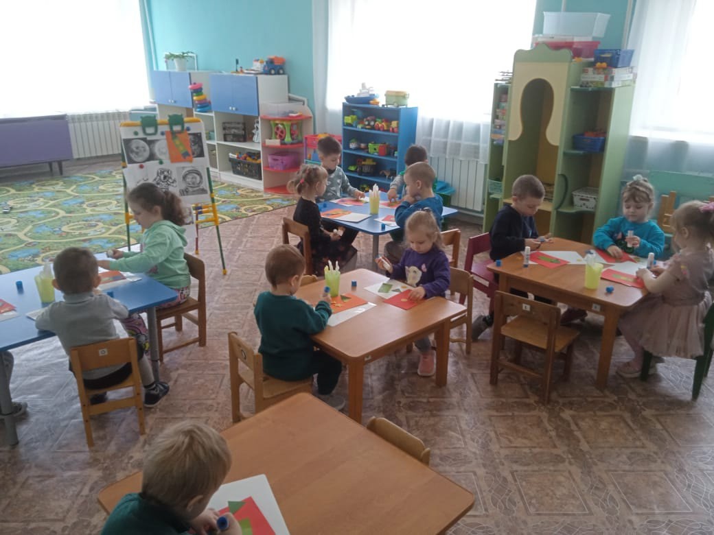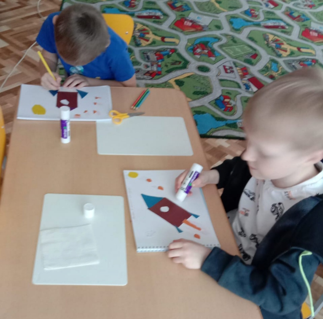 Во второй части занятия дети превратились в конструкторов и сделали свои ракеты, выполнили аппликацию «Моя ракета».
