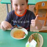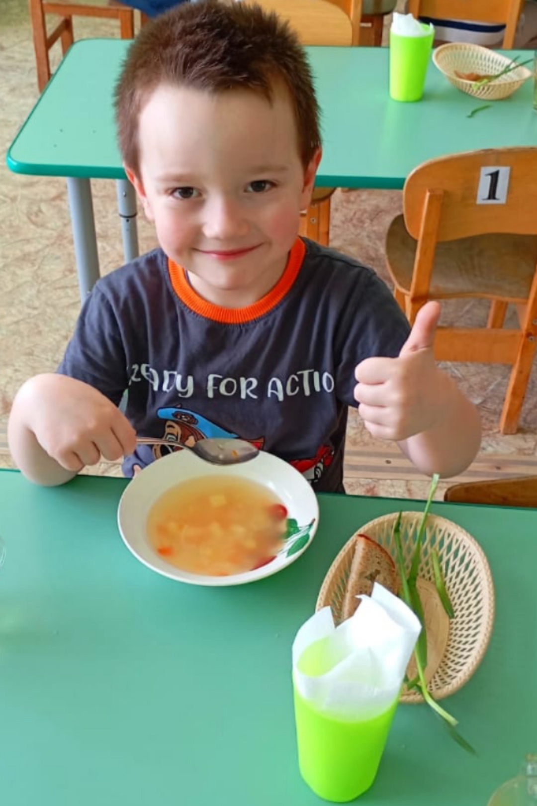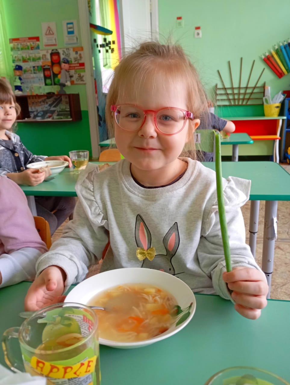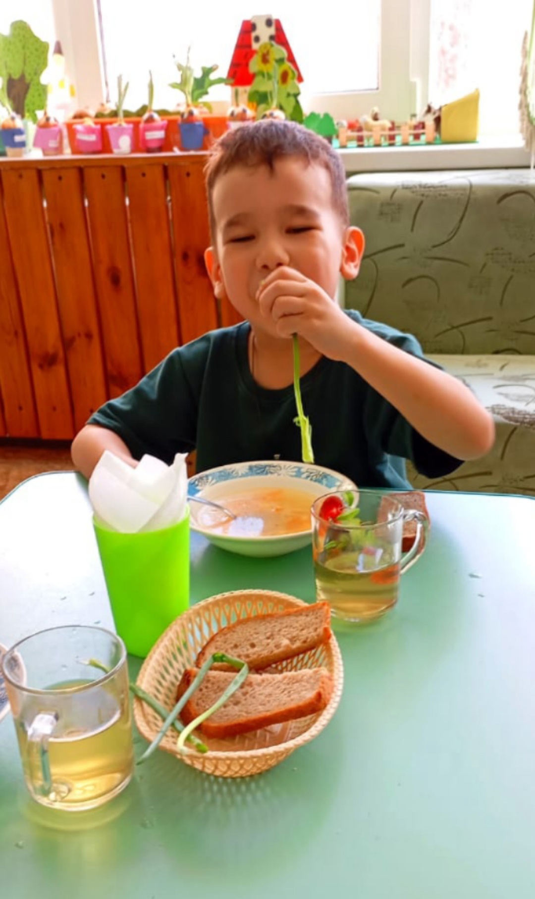Сегодня на обед ребята продегустировали первый урожай лука со своего огорода на подоконнике.