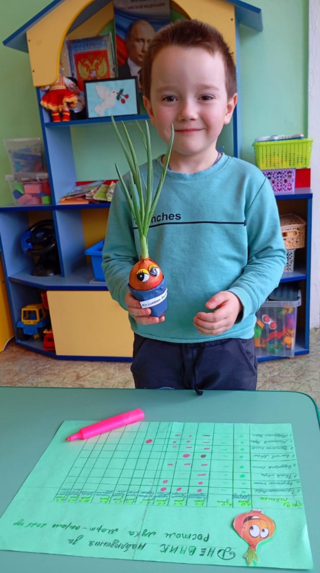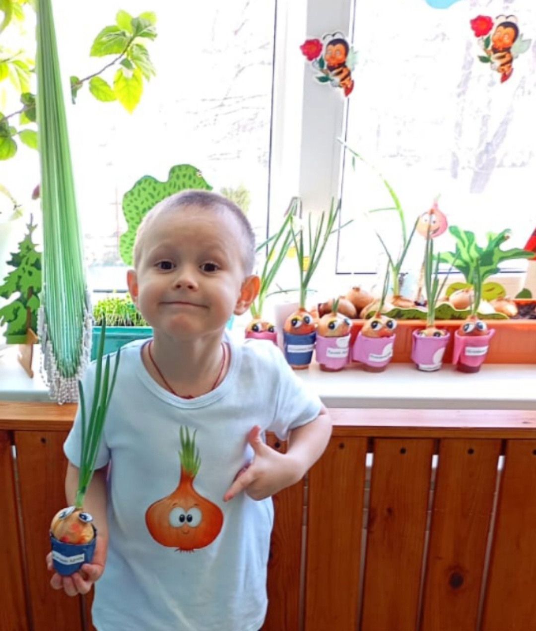 Все это время воспитанники с интересом и вниманием ухаживали за своими луковками, поливали, вели дневник наблюдения. Даже устроили соревнование у кого вперёд прорастет луковка.