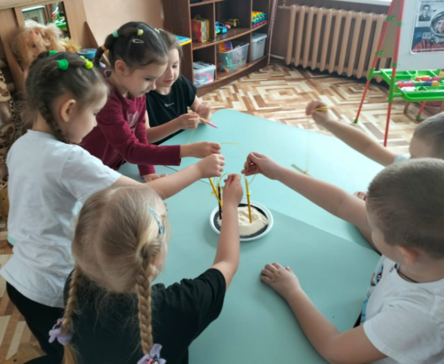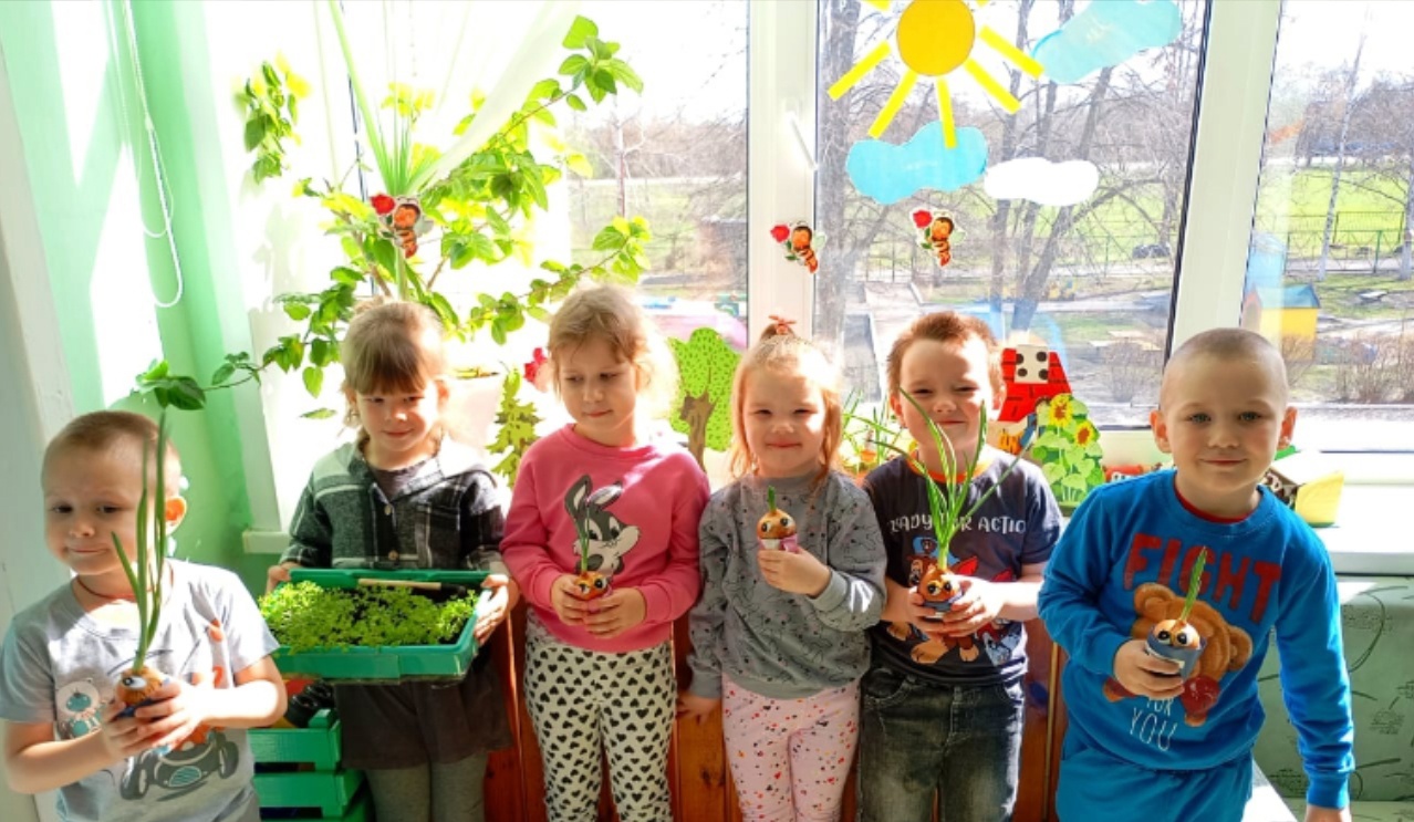 Воспитанники средней группы «Пчёлки» вместе с воспитателем организовали свой огород на подоконнике