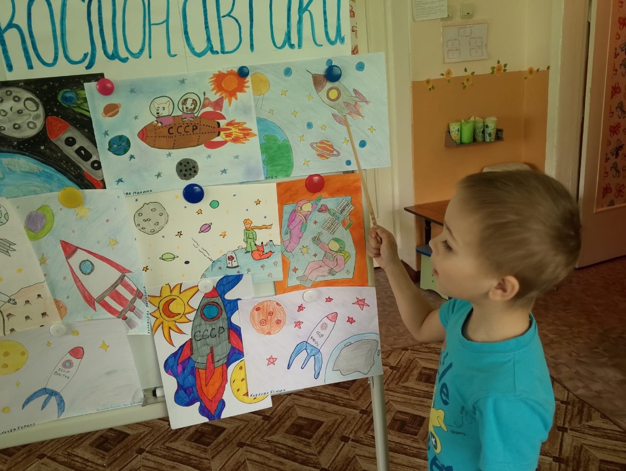 В предверии приближающегося праздника День Космонавтики в старшей группе «Одуванчики» совместными усилиями родителей и детей была организована выставка рисунков — «12 апреля -День космонавтики».