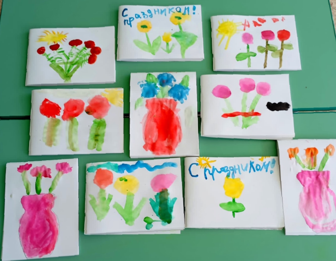 Во второй части занятия дети нарисовали поздравительные открытки «Букет цветов».