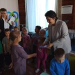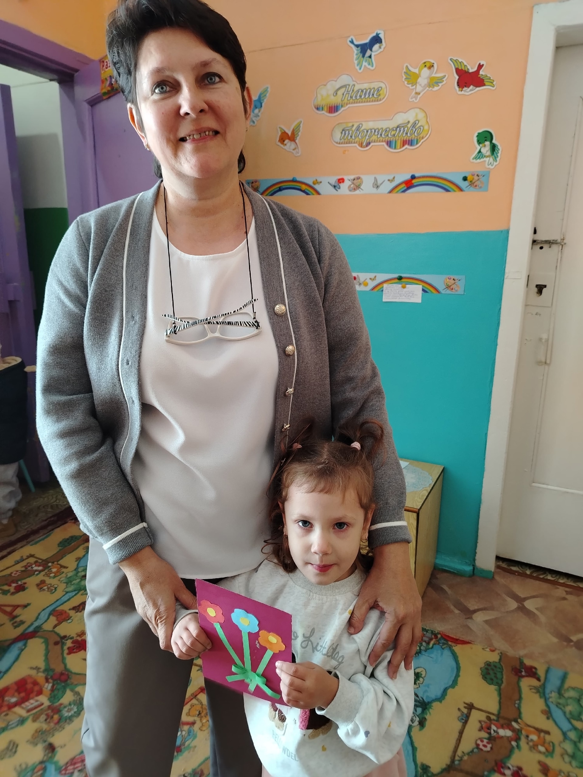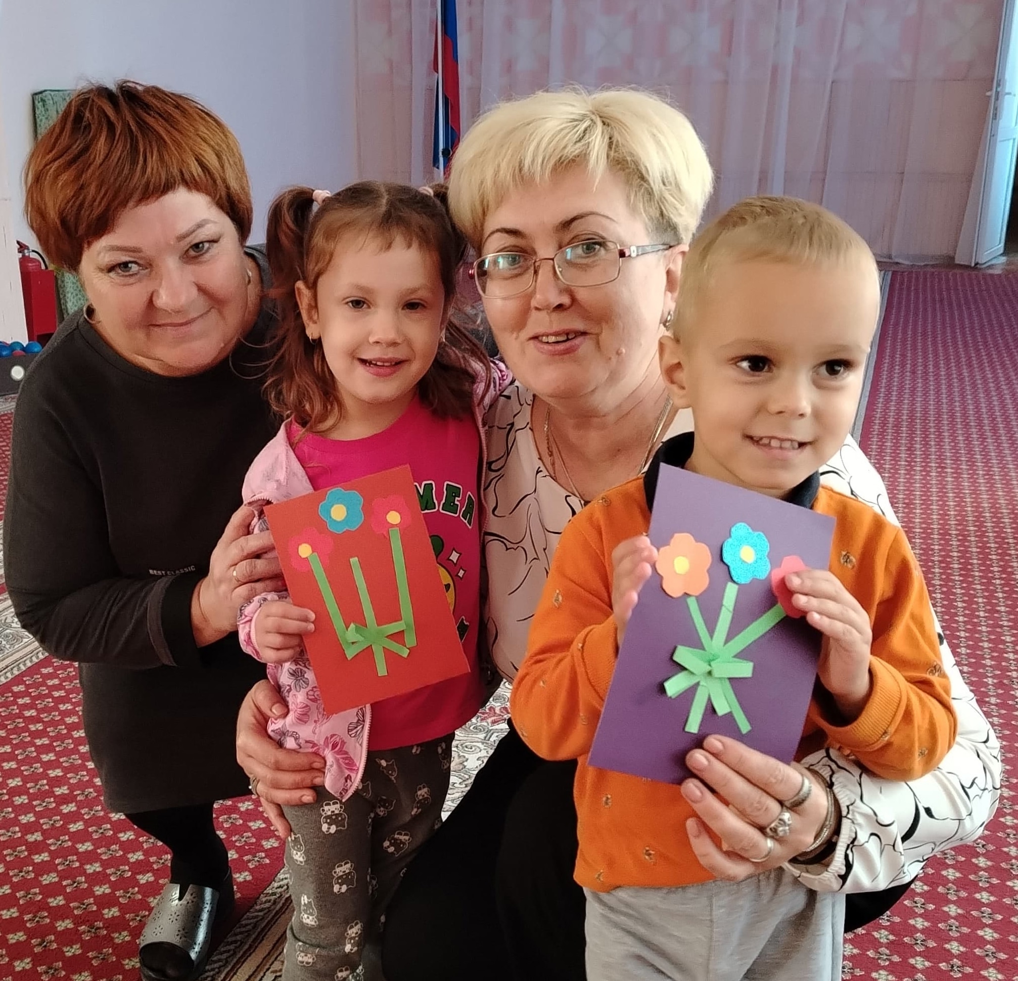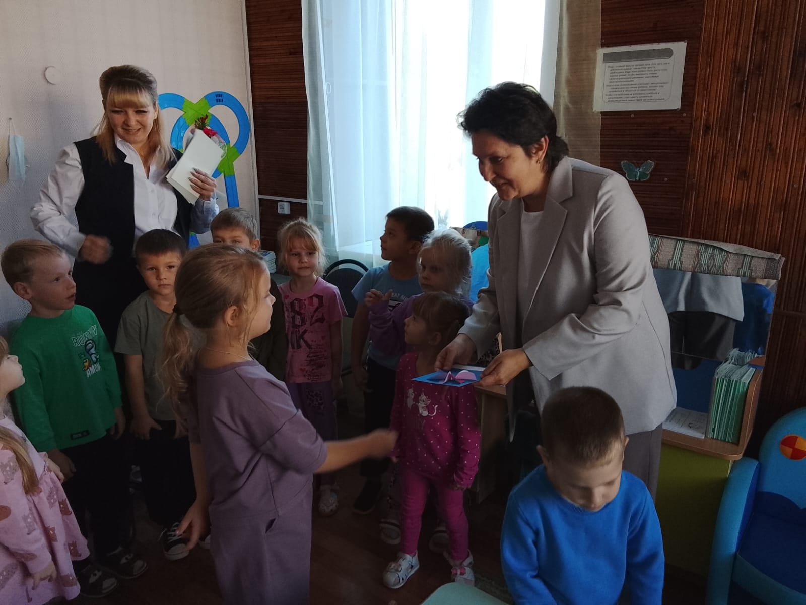 В завершении экскурсии ребята поздравили сотрудников детского сада и подарили открытки, которые сделали заранее на занятии своими руками.
