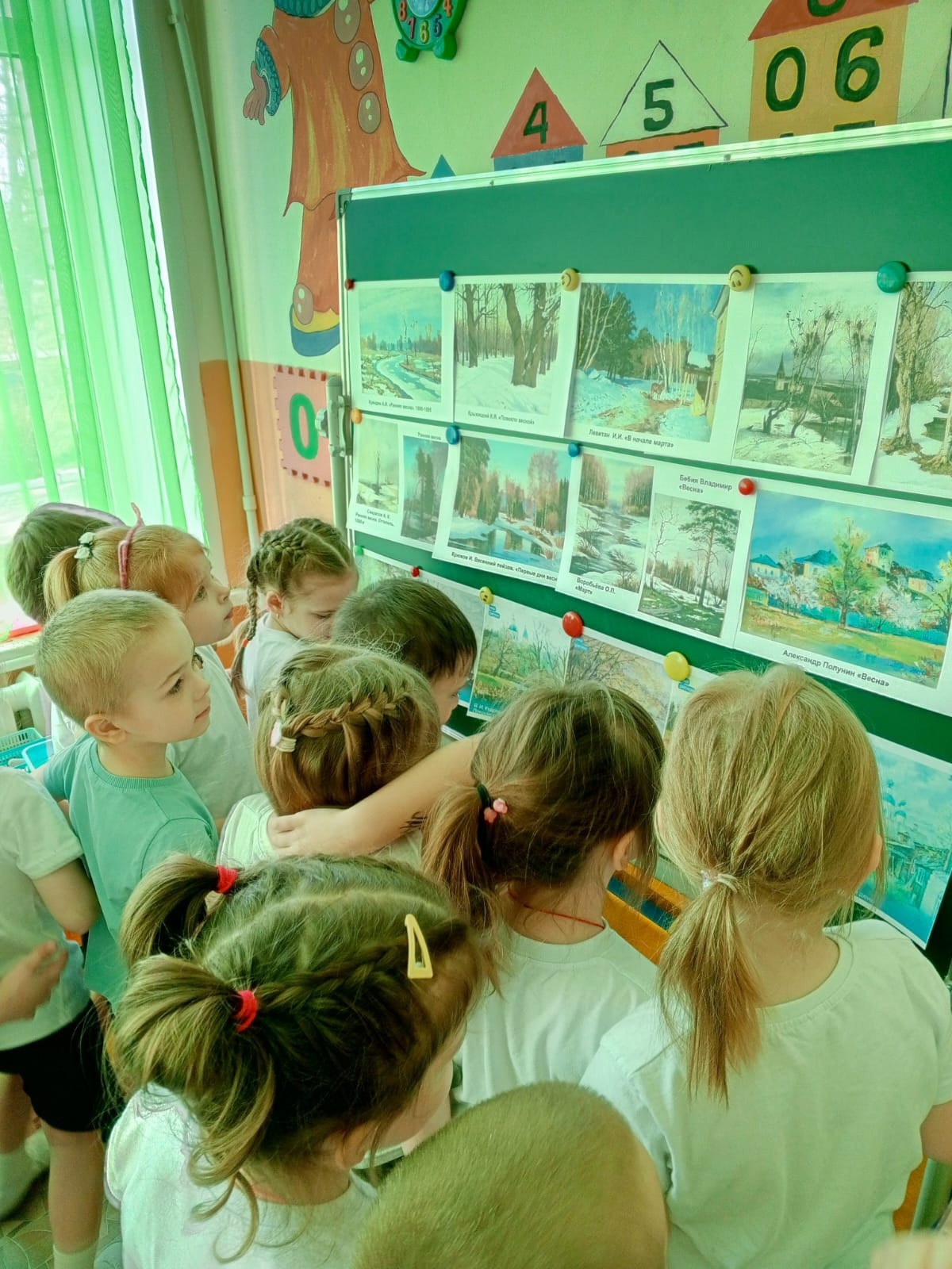 С воспитанниками старшей группы «Одуванчики» прошло занятие по художественно-эстетическому развитию — «К нам пришла весна». Ребята познакомились с картинами известных Тамбовских художников о весне: Воробьева О.П. «Март», А.Б. Балагурова «Весна», Крюков И. Весенний пейзаж.»Первые дни весны» и другие. Во второй части занятия дети нарисовали свои картины о весне.
