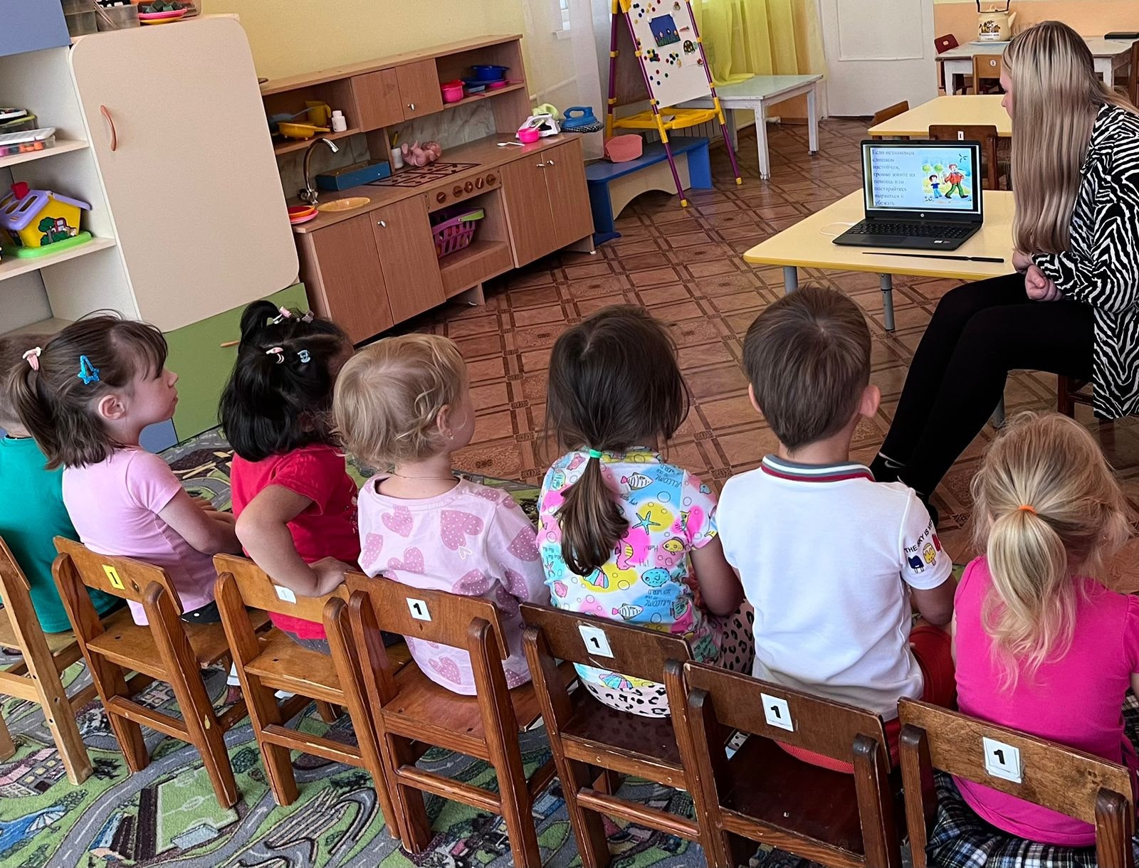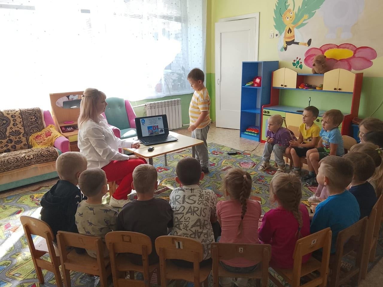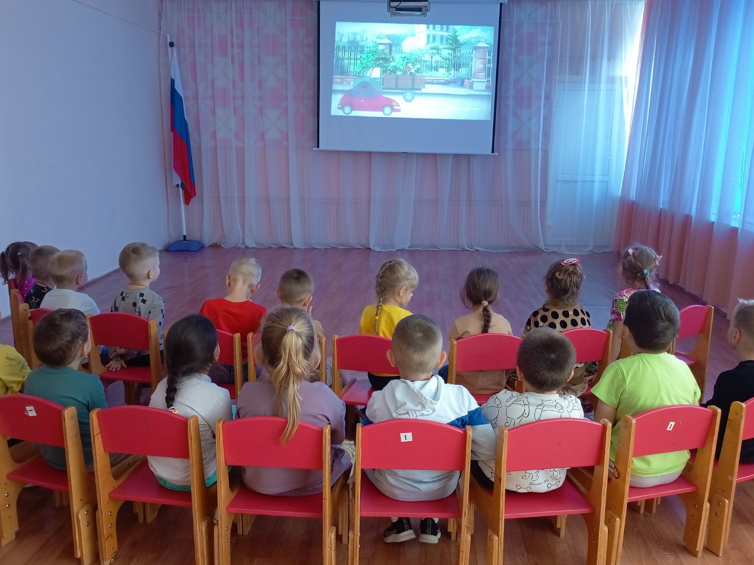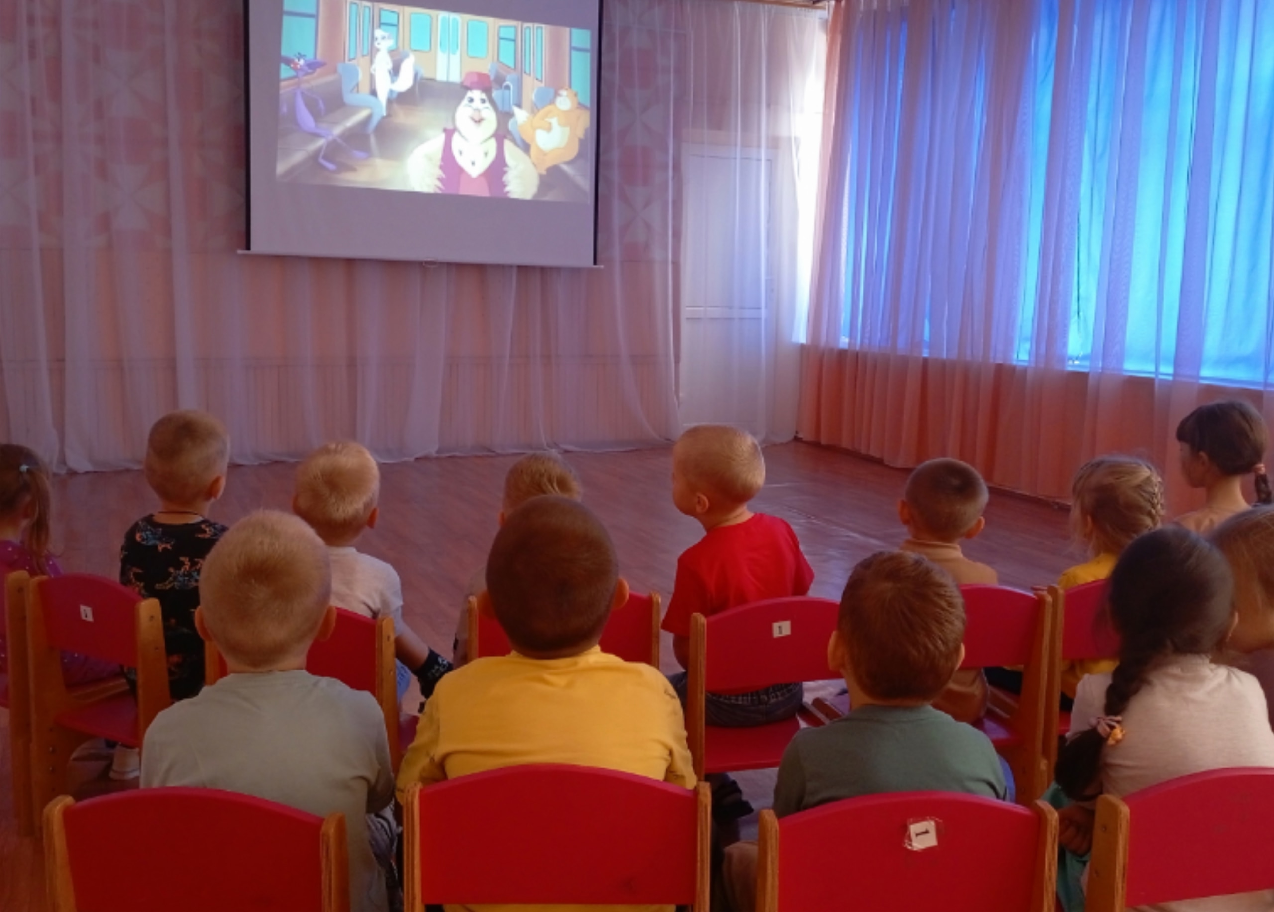 В рамках профилактической акции «Внимание, дети!» воспитанники старших групп «Пчелки» и «Цветные ладошки» посмотрели обучающий мультфильм «Уроки тетушки Совы. Азбука дорожной безопасности».