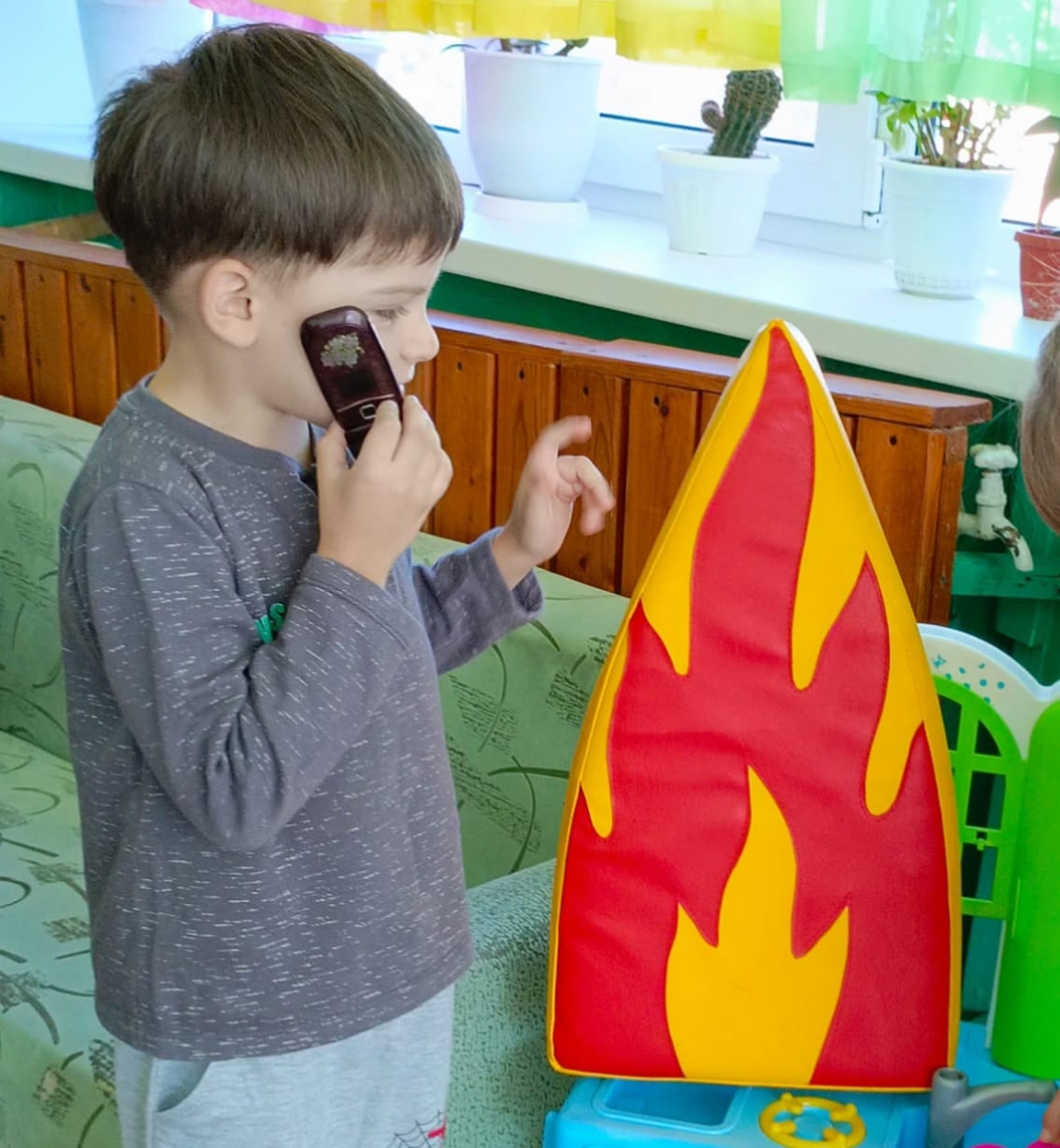 На занятии дети закрепили правила правила поведения при пожаре, вспомнили номер телефона пожарной службы «01», единой службы «101».