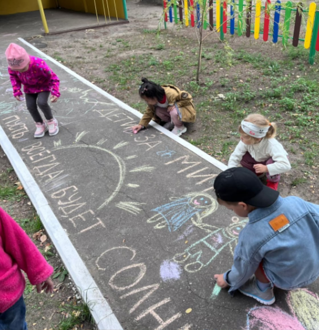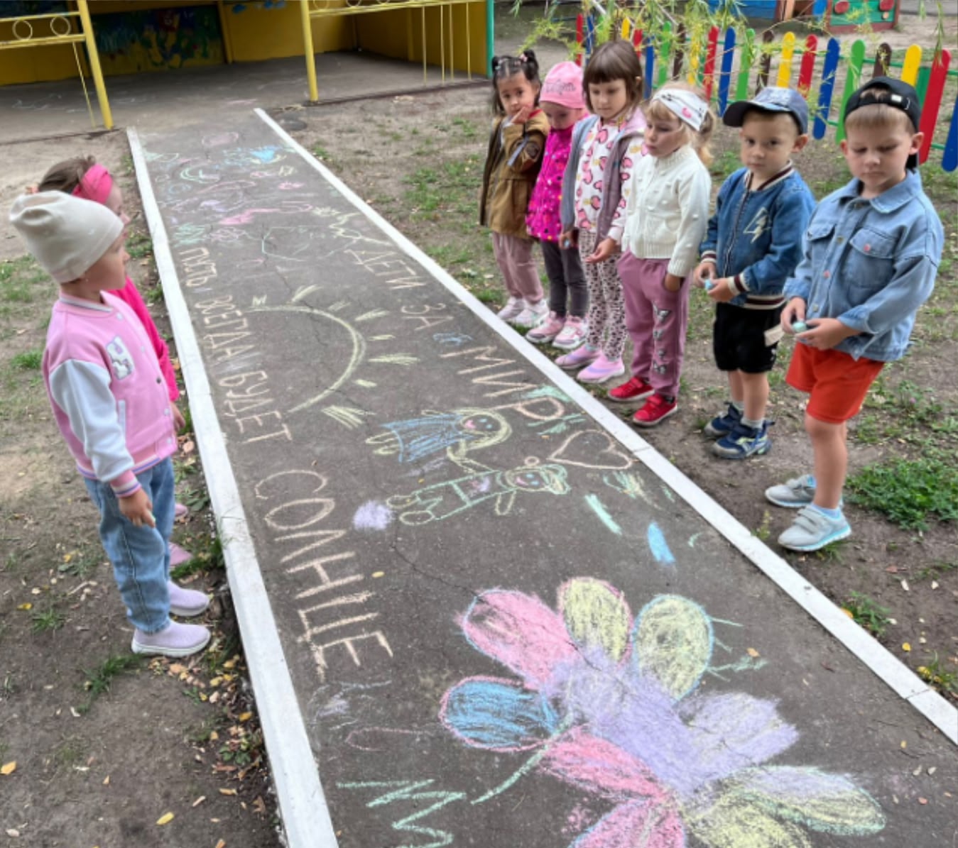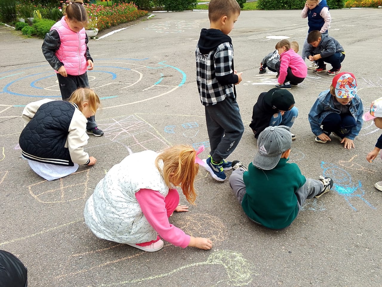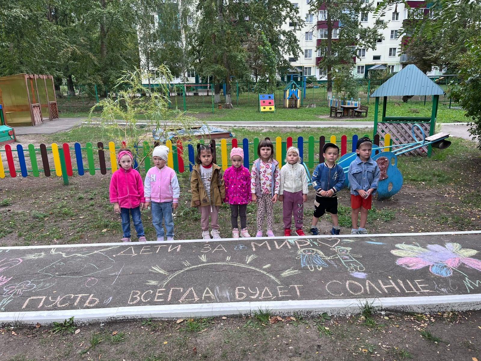 Воспитанники подготовительных к школе групп «Одуванчики и «Светлячки» приняли участие в конкурсе рисунков на асфальте — «Миру-Мир! «, посвящённому Дню солидарности в борьбе с терроризмам.