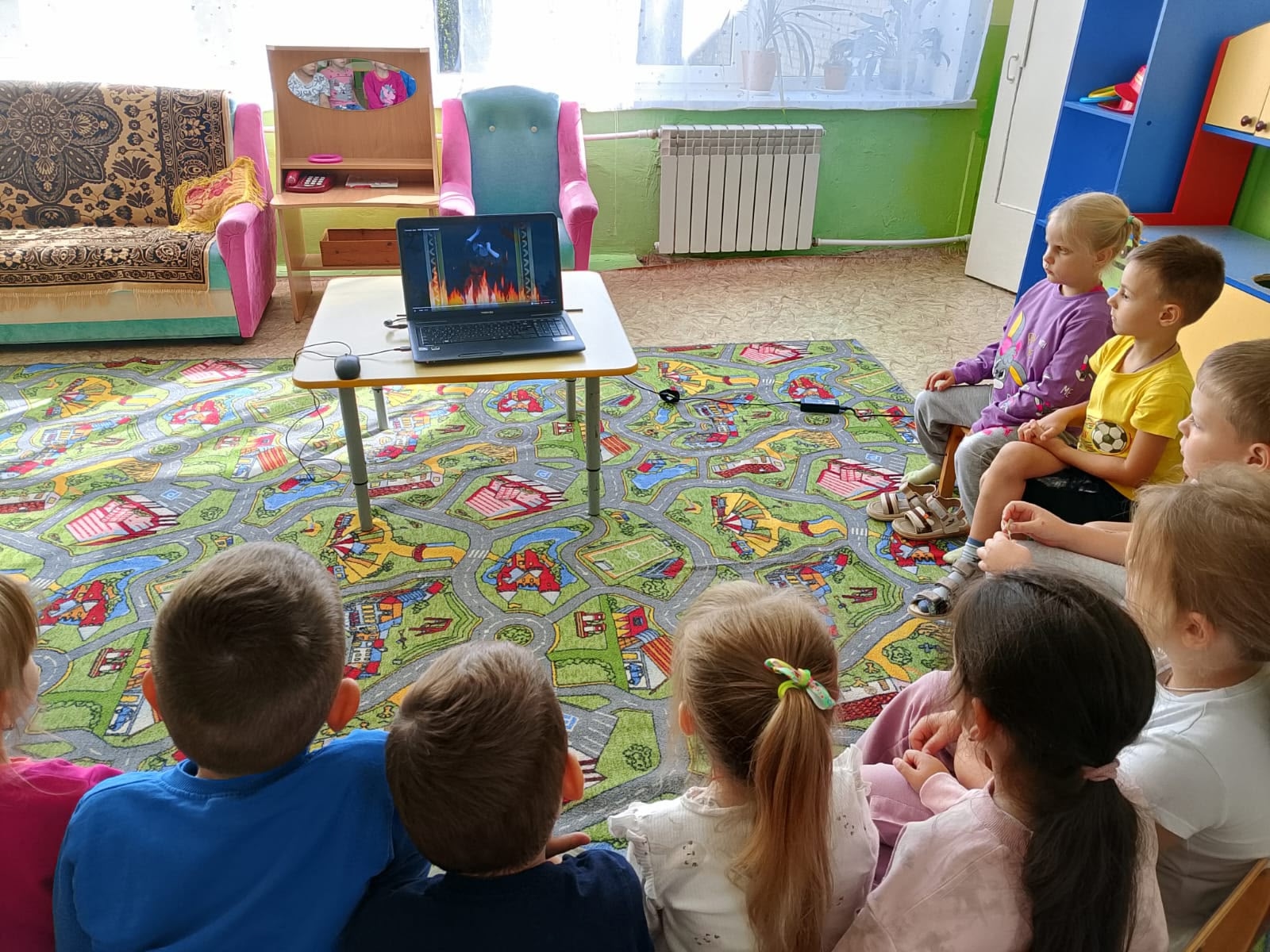 Ребята посмотрели видеопрезентацию «Соблюдай правила пожарной безопасности!». В ходе беседы воспитаники закрепили знания о правилах поведения при пожаре, какие предметы в быту опасны, вспомнили номера телефонов пожарной службы — 101, медицинской помощи — 103.