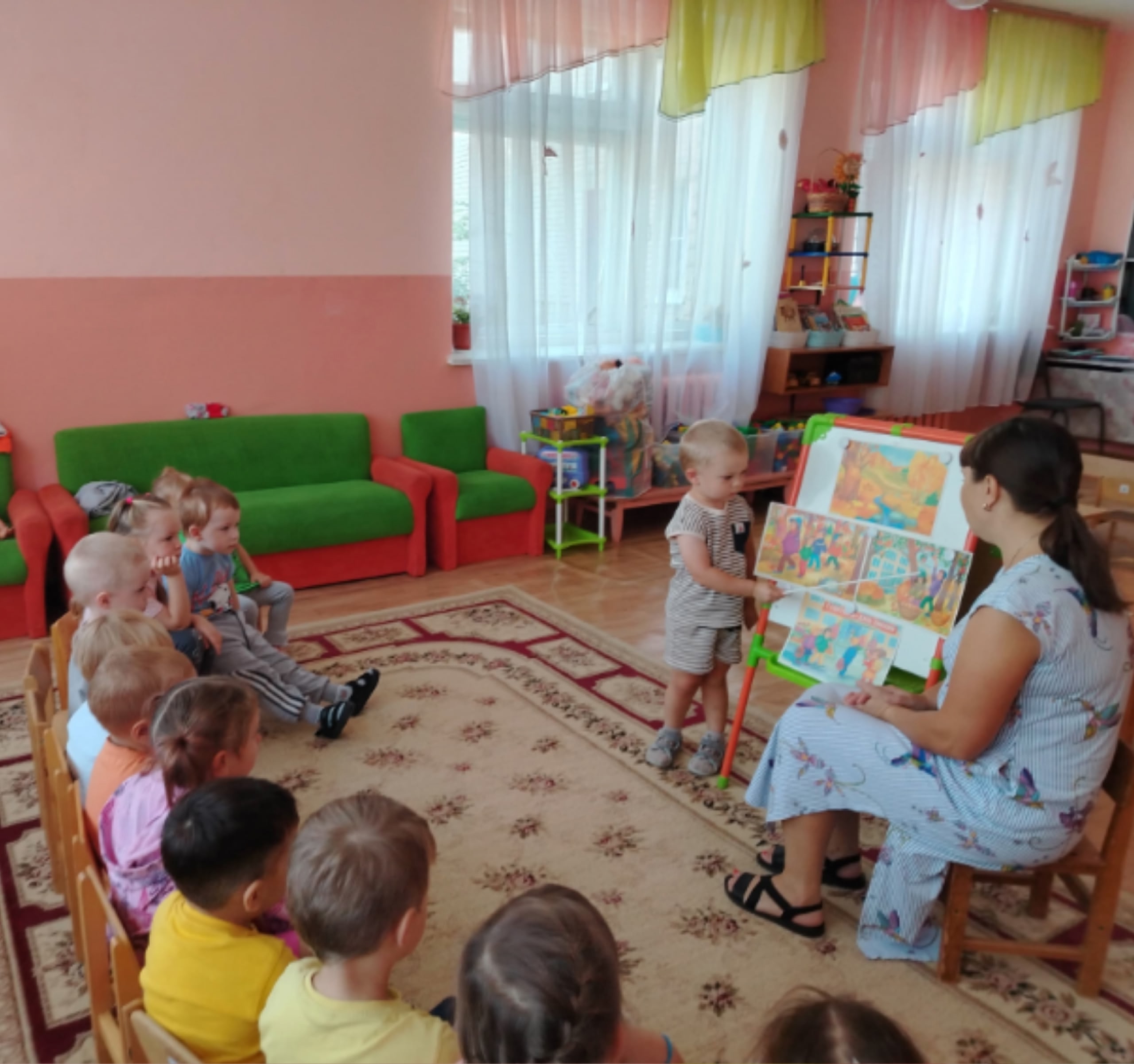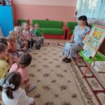 В рамках тематической недели с воспитанниками вторых младших групп «Капельки» и «Затейники» прошла тюбеседа — «Осень в гости к нам пришла». Ребята рассмотрели иллюстрации про осень, узнали, что лето закончилось и наступила осень. С приходом осени происходят изменения в природе, начинают желтеть листья на деревьях, птицы улетают в тёплые края, звери, начинают готовиться к холодам, люди собирают урожай (яблоки, груши, картофель, морковь, свёкла).