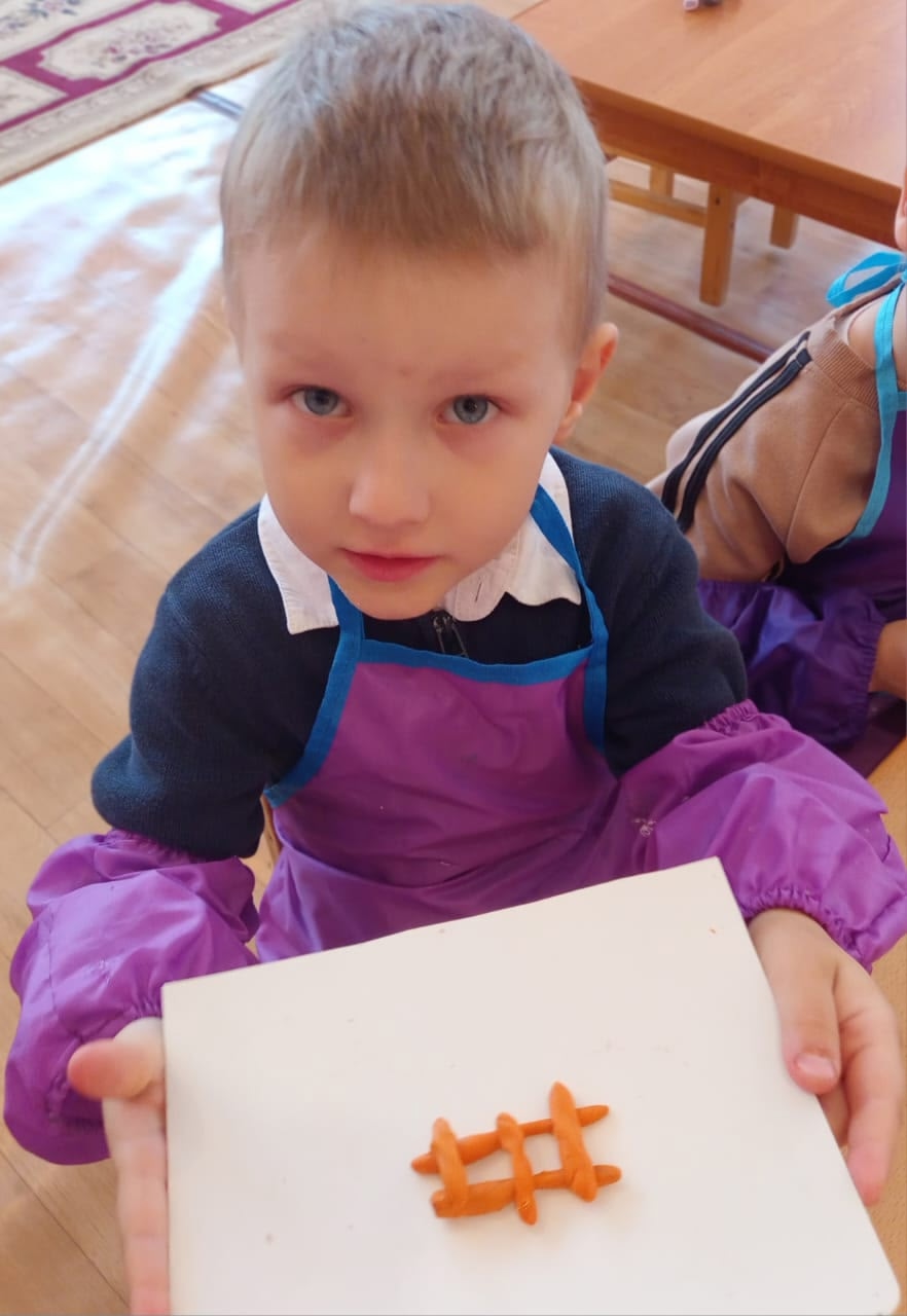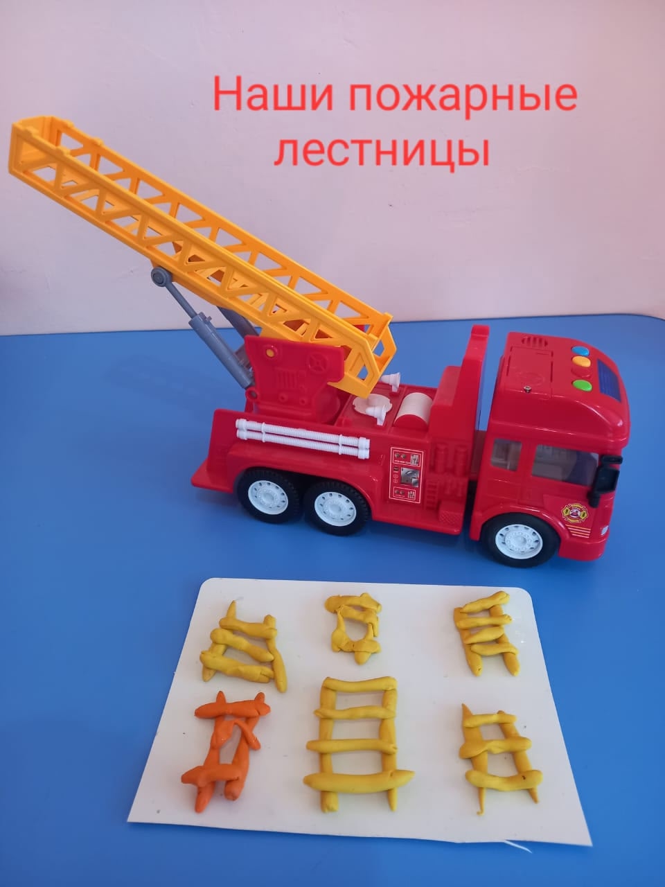 Во второй части занятия ребята слепили из пластилина «пожарные лестницы».