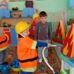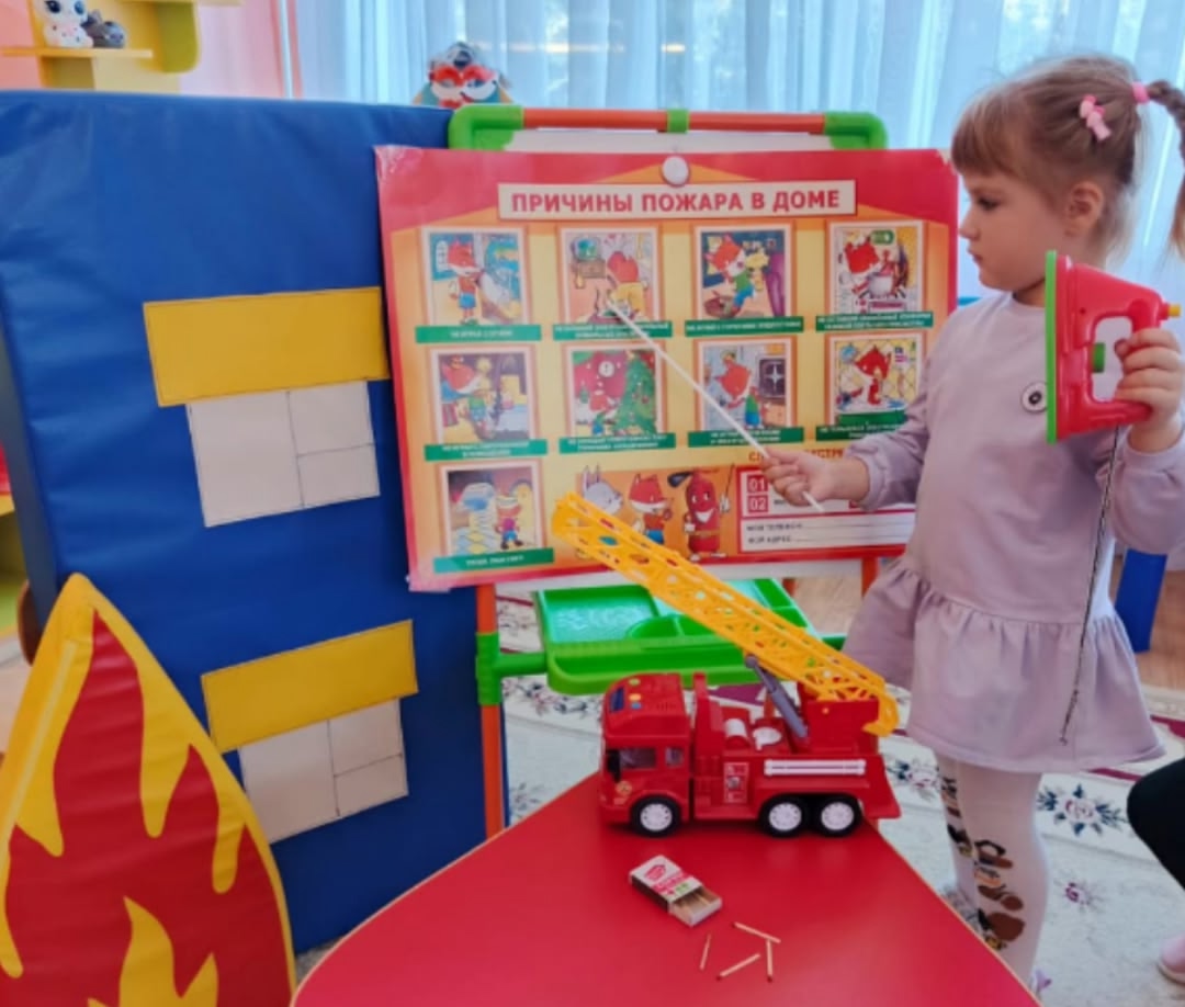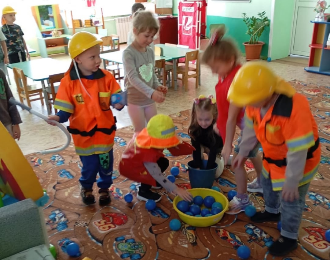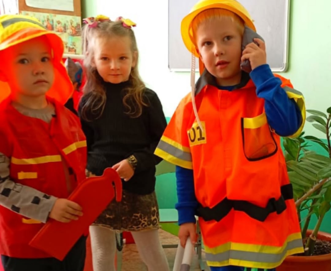 Во второй части занятия ребята расширили свои знания о профессии «пожарный», отработали алгоритм действий по возникновении пожара дома, поиграли в сюжетно-ролевую игру «Пожарники на задании».