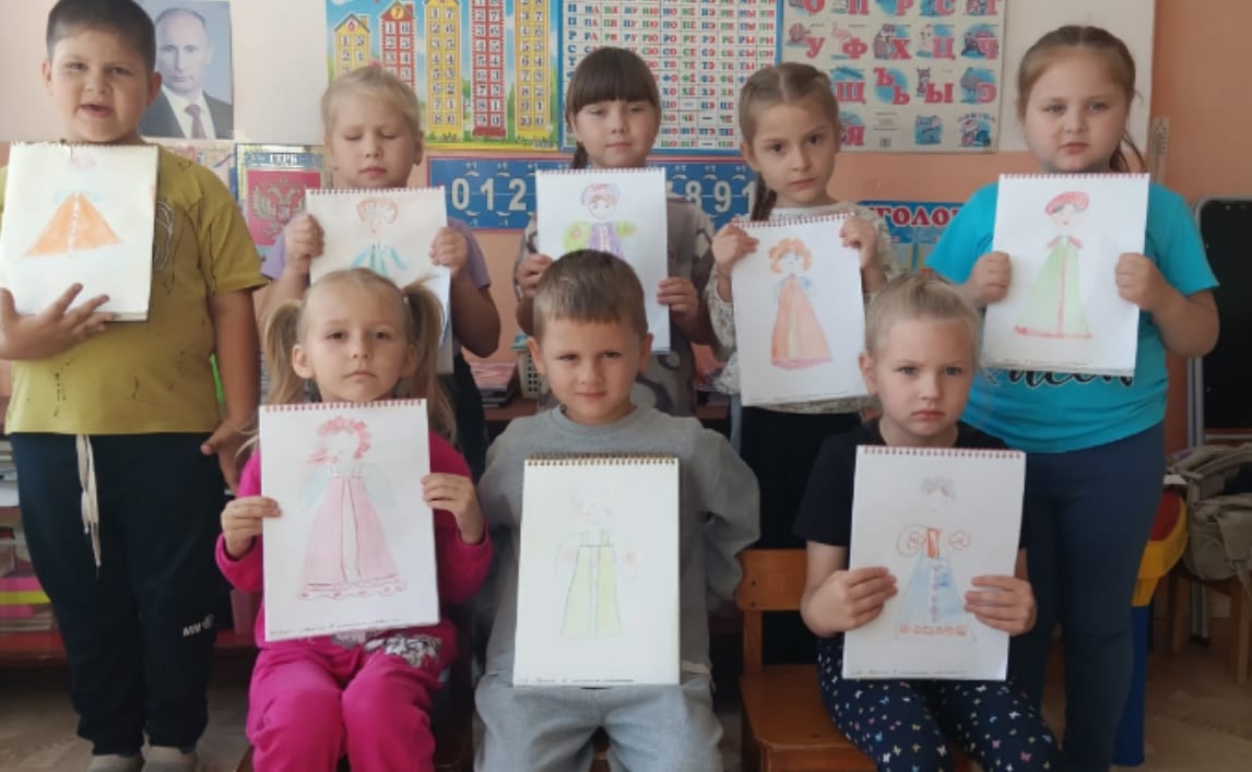 Желания ребят совпали, все нарисовали куклу в русском-народном костюме.